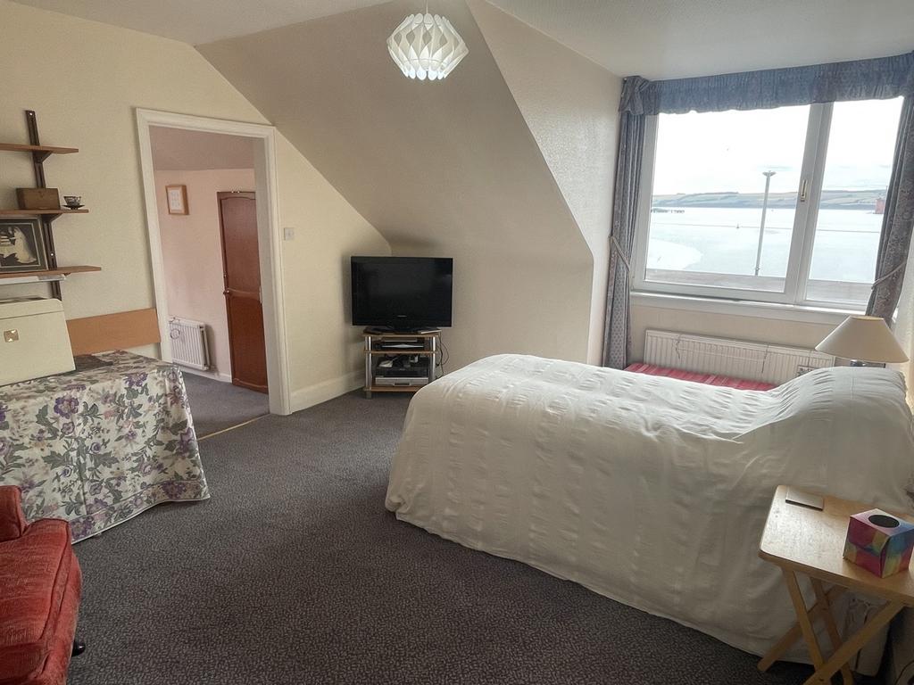 Double bedroom with window to the front with sea views. Walk in wardrobe. Loft access hatch. Radiator. Carpeted. Coombed ceiling.