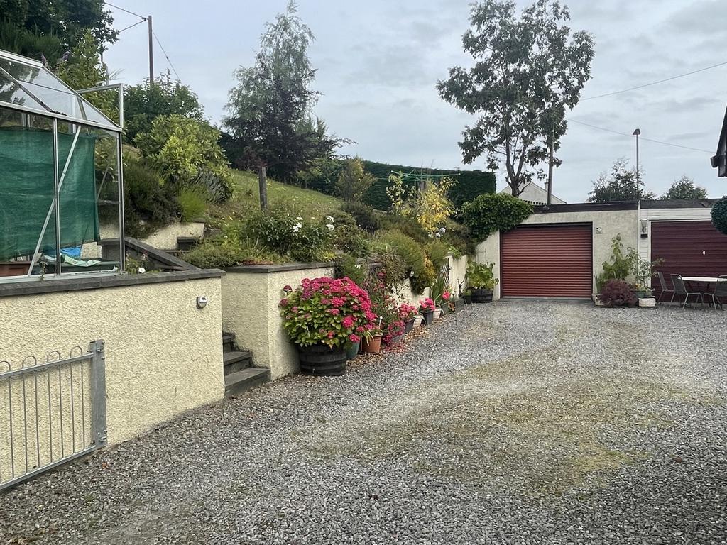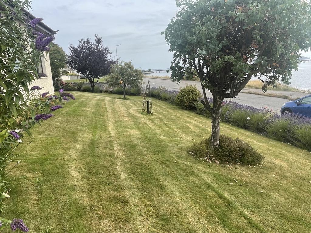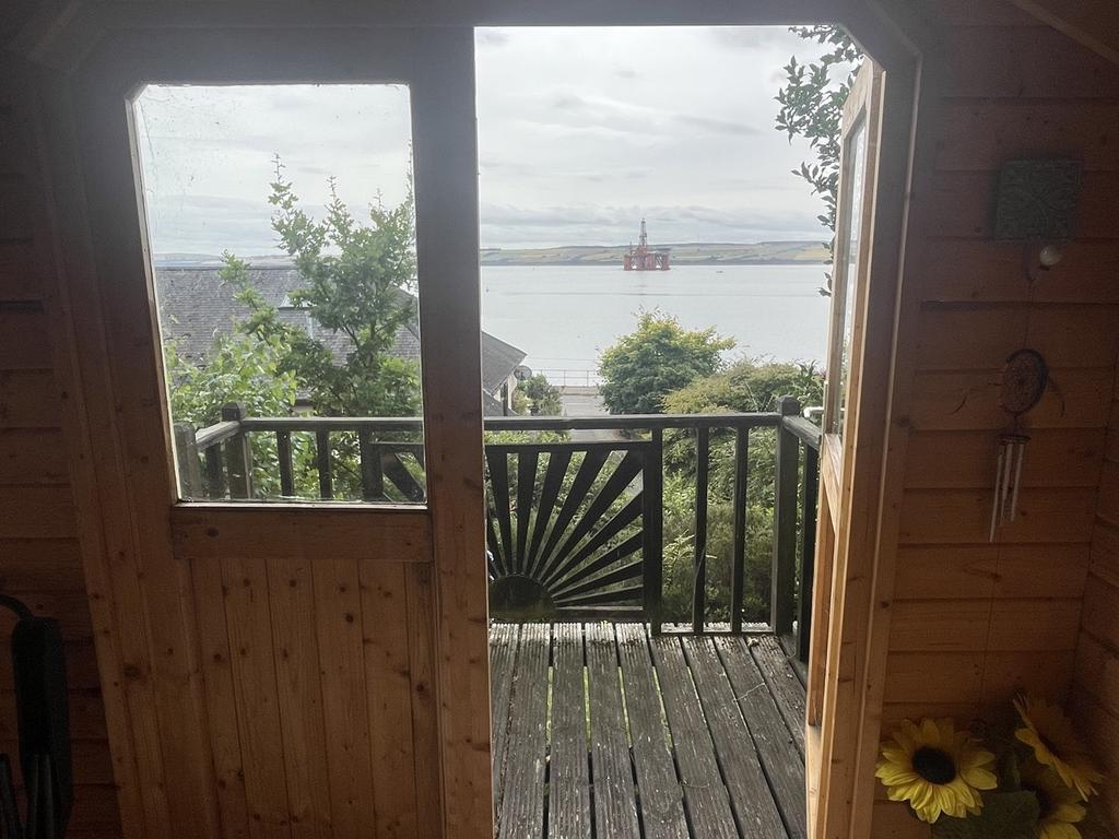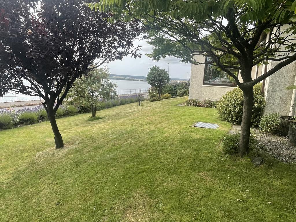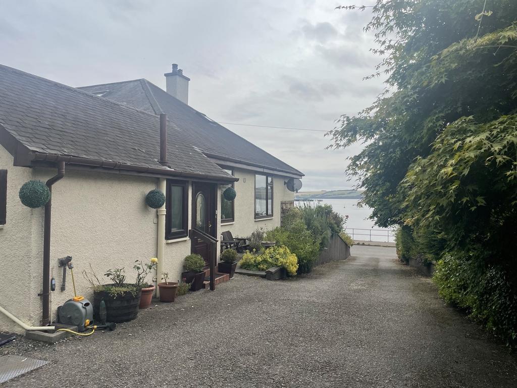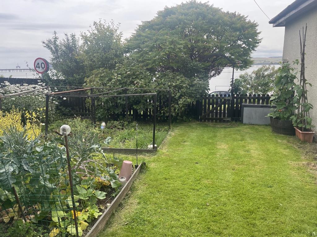 There is a driveway to the side of the property which leads round to the rear of the house where there is a courtyard providing parking for several vehicles. There are 2 garages, one with power and light and the other with light. There is an outside power point to the side of the garages and vegetable garden. A paved path leads up to the elevated garden area which offers views above the property to the sea an Black Isle beyond. There is a summer house and a greenhouse. To the front, there is a lawn with mature shrub and floral