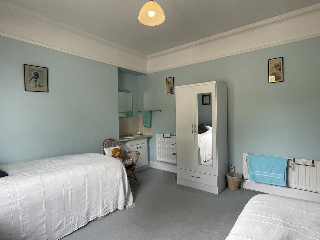Twin bedroom with vanity sink unit. Two radiators. Carpeted. Window to the rear of the property.