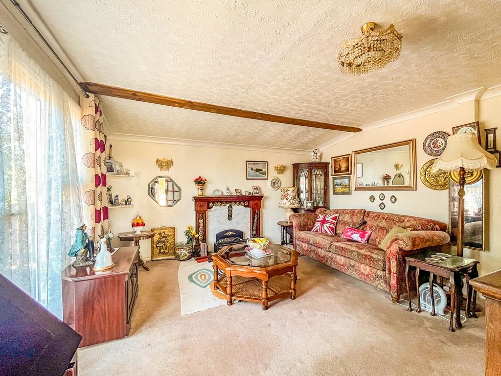 14' 3" x 13' 8" (4.34m x 4.17m) Aspect to the rear of the property with double doors leading out to a raised decked area in the rear garden, centered around an electric fire with marble effect inset and carved wood surround, television aerial point, door into