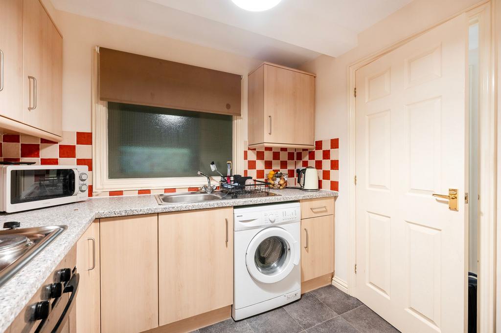 The excellent-sized bedroom, features a pop of red, double bed proportions and built-in storage options to help keep the space organised and clutter-free. Completing the apartment is an up-to-date three-piece bathroom suite, providing convenience and comfort for residents. With modern fixtures and a clean design.