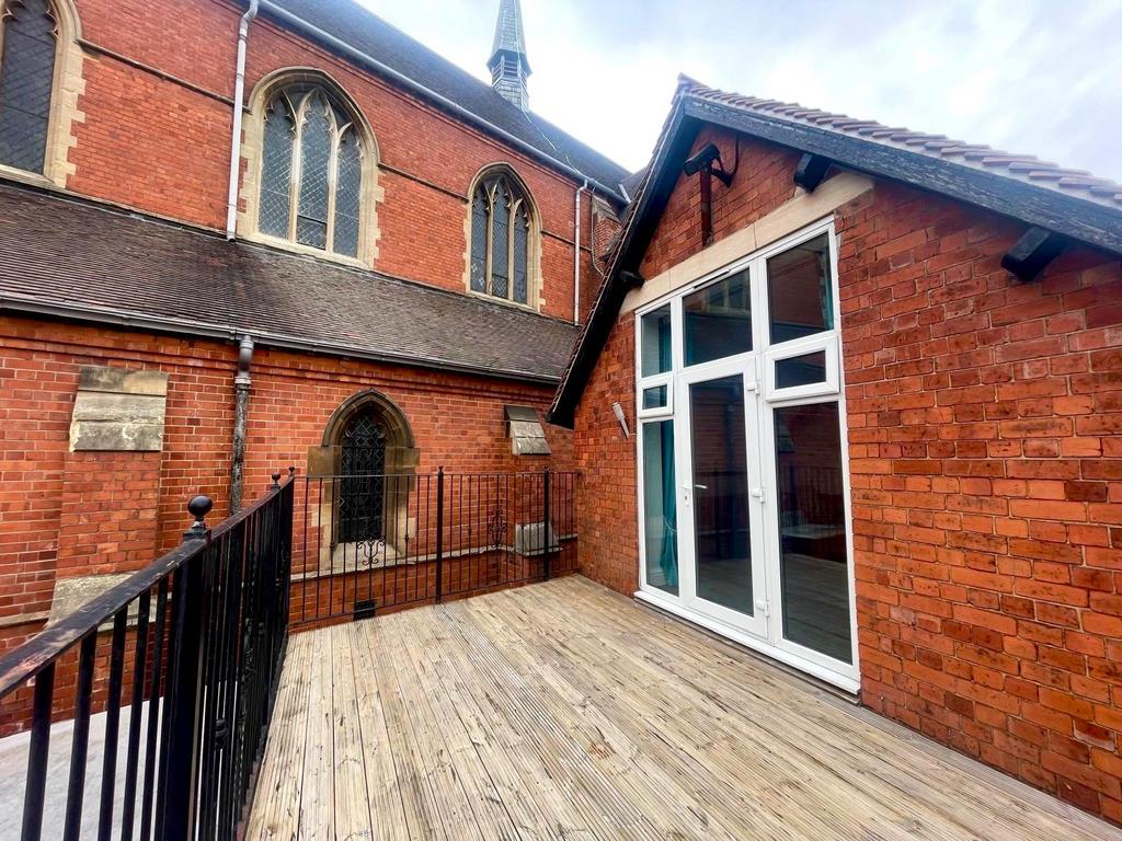 Laid to decking, and enclosed by wrought iron railings, open views of the church and adjacent neighbourhood. This is an ideal space for relaxing, and alfresco dining.