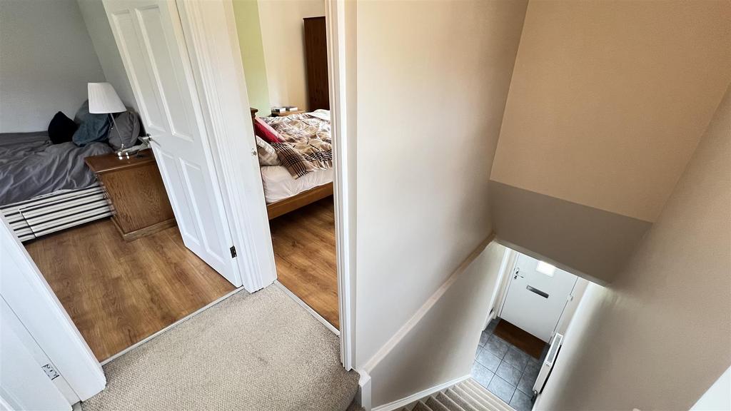 Stairs And Landing - Stairs ascend from the entrance to the first floor landing. There is a side facing window, carpeted flooring and doors lead to the two bedrooms and house bathroom.