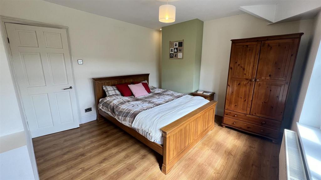 Bedroom One - 4.40m (max) x 3.45m approx. (14'5" (max) x 11'3" a - Decorated in neutral tones with complementary oak effect vinyl flooring, is this well-proportioned double bedroom. Spanning the width of the property there is ample room for freestanding bedroom furniture and a large front facing window gives views overlooking the garden and surrounding village. The room is finished with pendant lighting and a timber door which leads onto the landing.