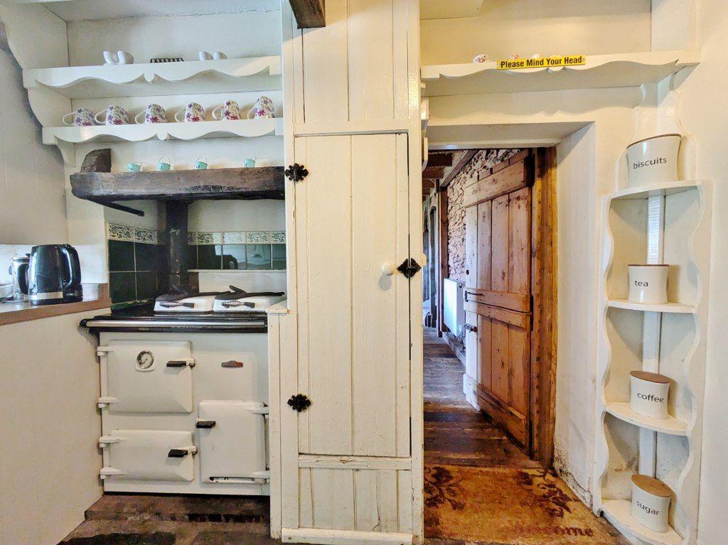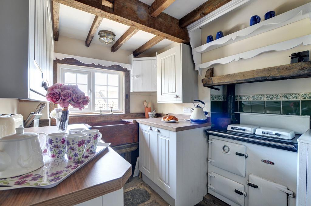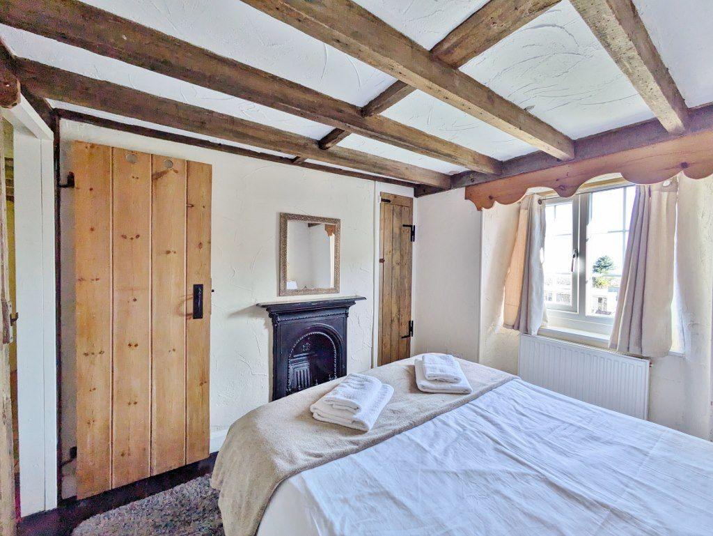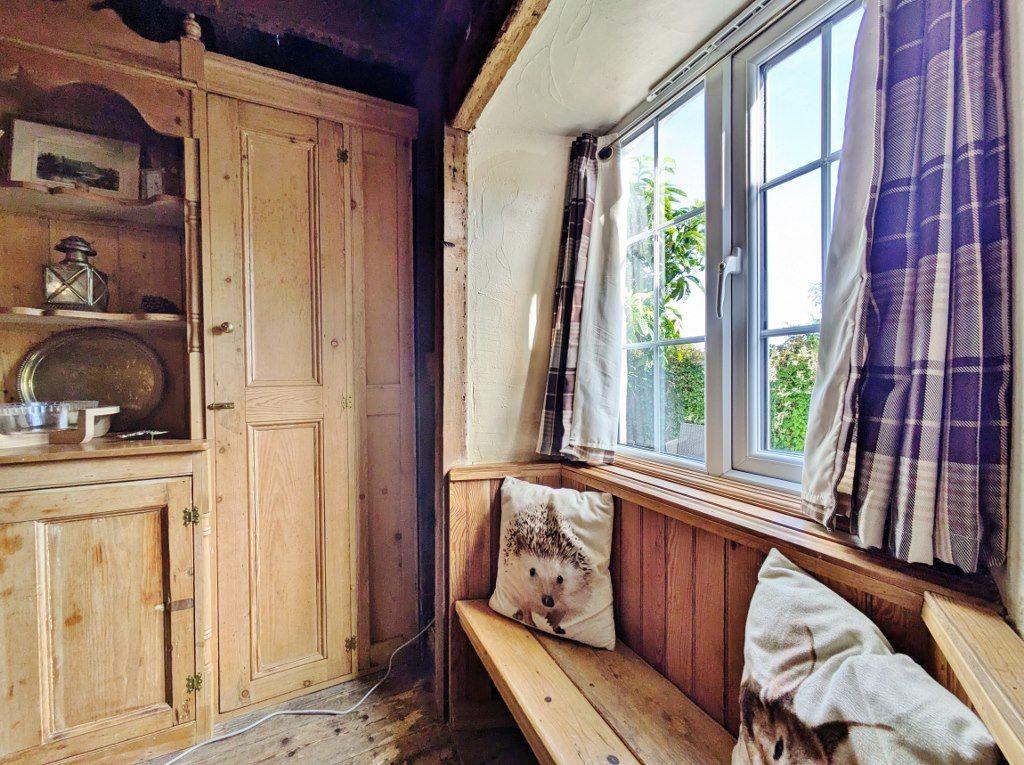 Cottage-style doors with thumb-latches to bedroom one, bedroom two, and bathroom. Bi-folding wooden door to attic room. Casement windows to the rear. Airing cupboard with hot water tank