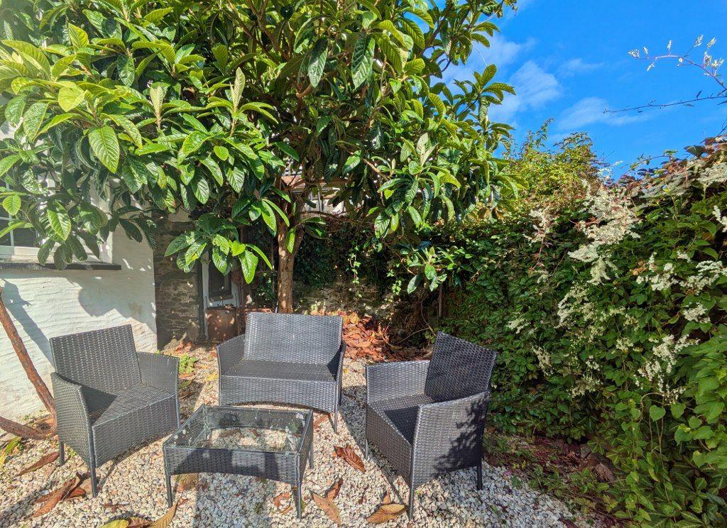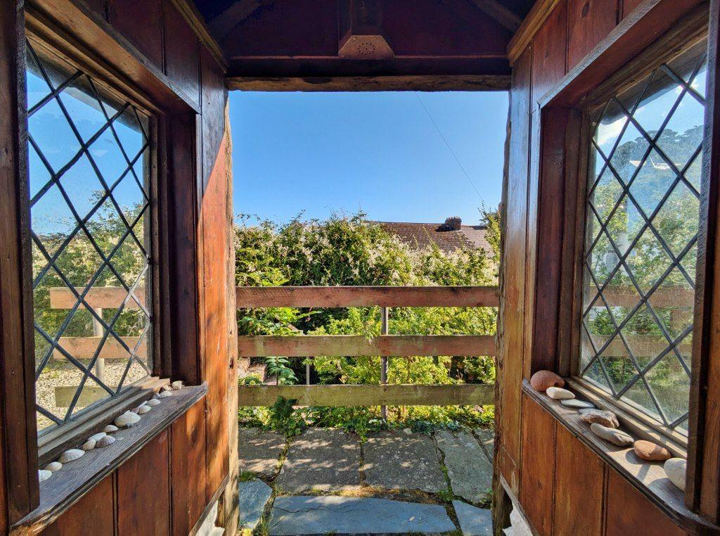 From a footpath known as Granny's Lane, a path runs behind shops and houses, to a wooden picket gate, where a concrete path leads to a covered wooden gate with a slate tiled roof. This opens into the garden. At the front of the cottage there are two delightful gravelled patio areas with plenty of space for outside dining. A porch, with part glazed front door opens into the living room.
