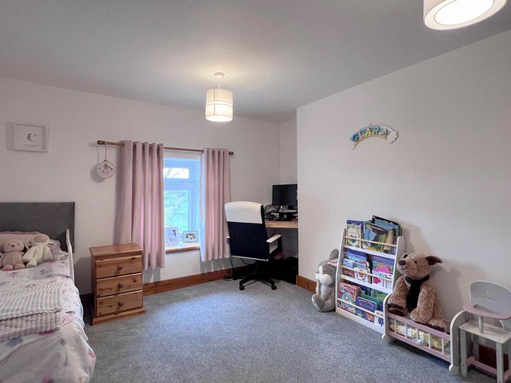 The landing enjoys large, bespoke timber storage cupboards, and gives access into all the rooms on the first floor. The main bedroom is of superb size, and boasts dual aspect windows to take in the striking views over the rolling hills of Mid-Wales. A second double room, and a comfortable single are also accessed from here. The first floor accommodation is completed by a modern family bathroom, enjoying a suite of panelled bath, low flush WC, pedestal wash hand basin and separate double shower cubicle.