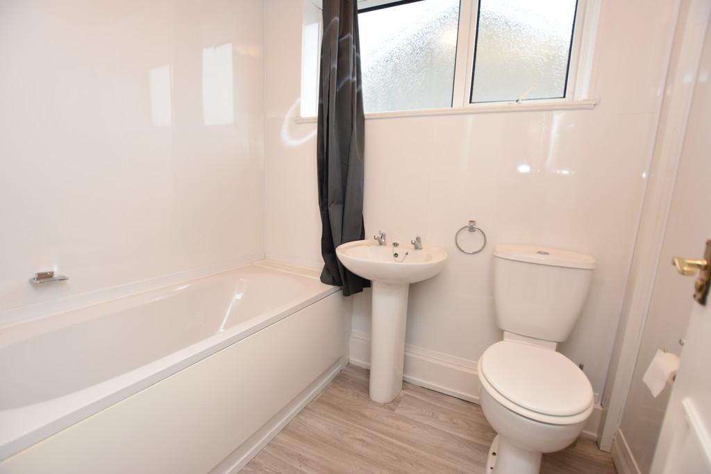BATHROOM 6' 10" x 5' 5" (2.08m x 1.65m) Three piece suite in white comprising of low level, dual flush WC, pedestal wash hand basin and panelled bath. Modern panelling to walls, ceiling light point and opaque uPVC double glazed window to side.