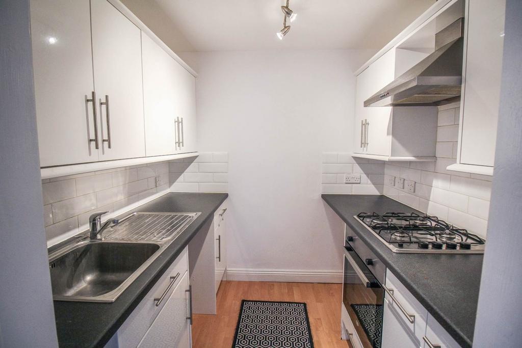 Fitted with a modern range of white high gloss eye and base level units with rolled edge worktop surface over with inset single drainer stainless steel sink with mixer taps and tiled splash backs. Built in four ring stainless steel gas hob with oven under and stainless steel canopy extractor over. Space for fridge. Space and plumbing for washing machine.