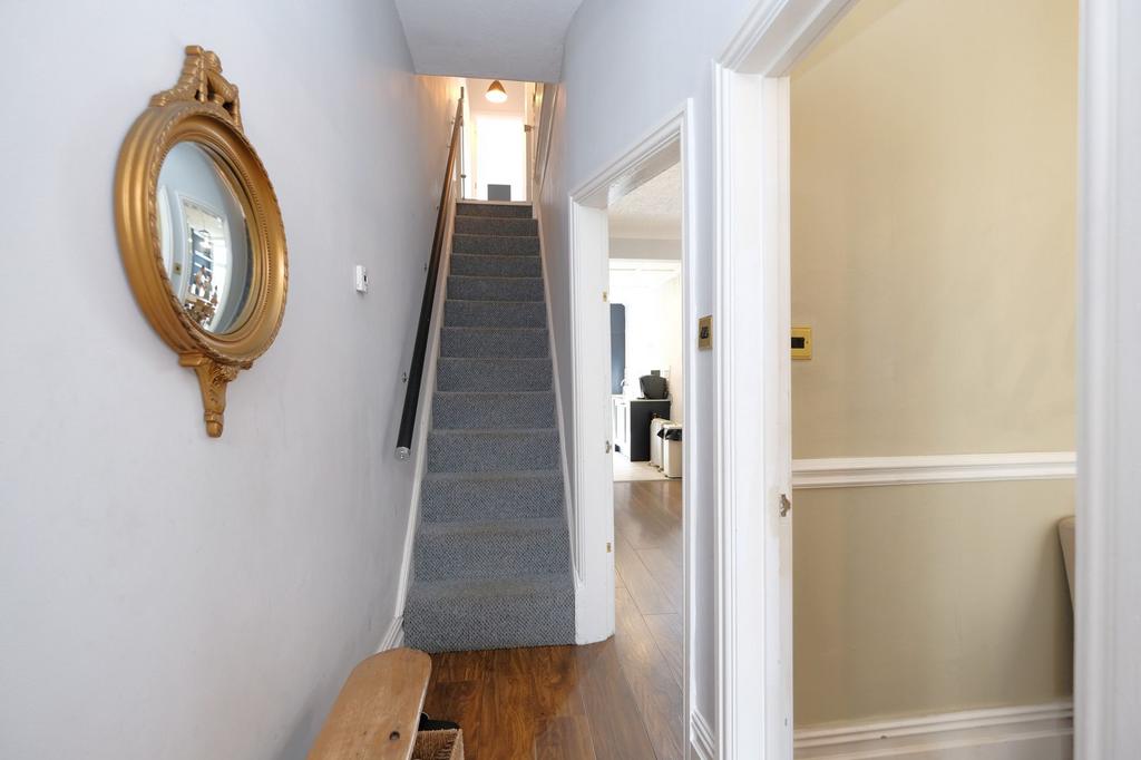 Complete with three ceiling light points, storage cupboard understairs and carpeted floors.
