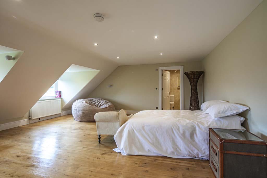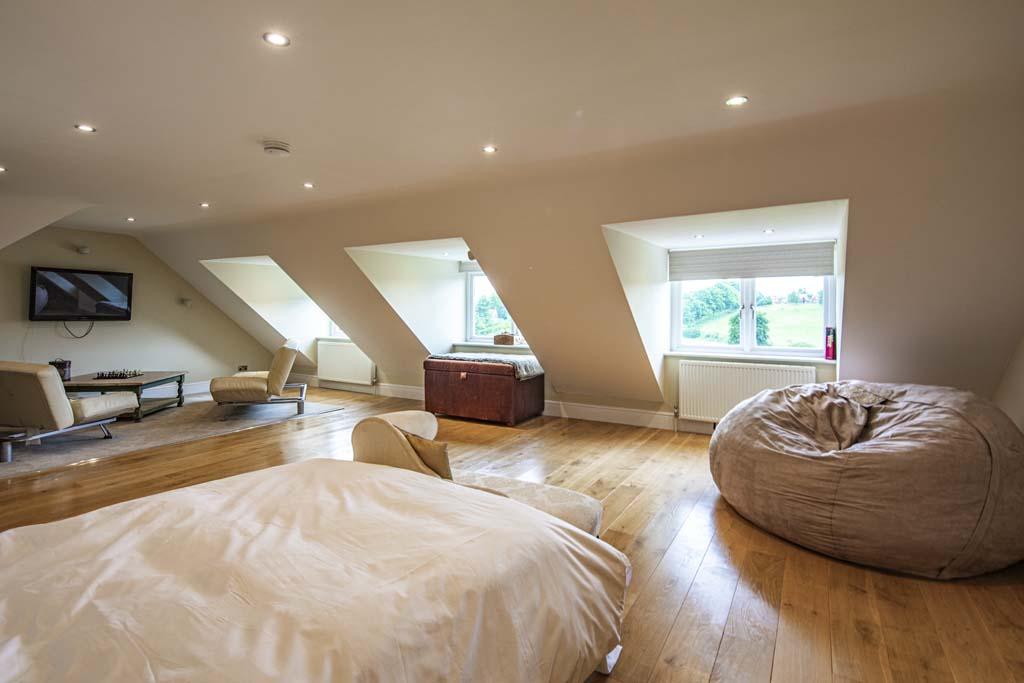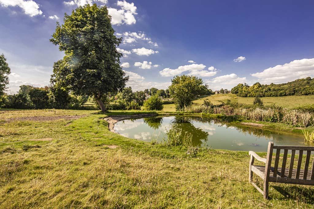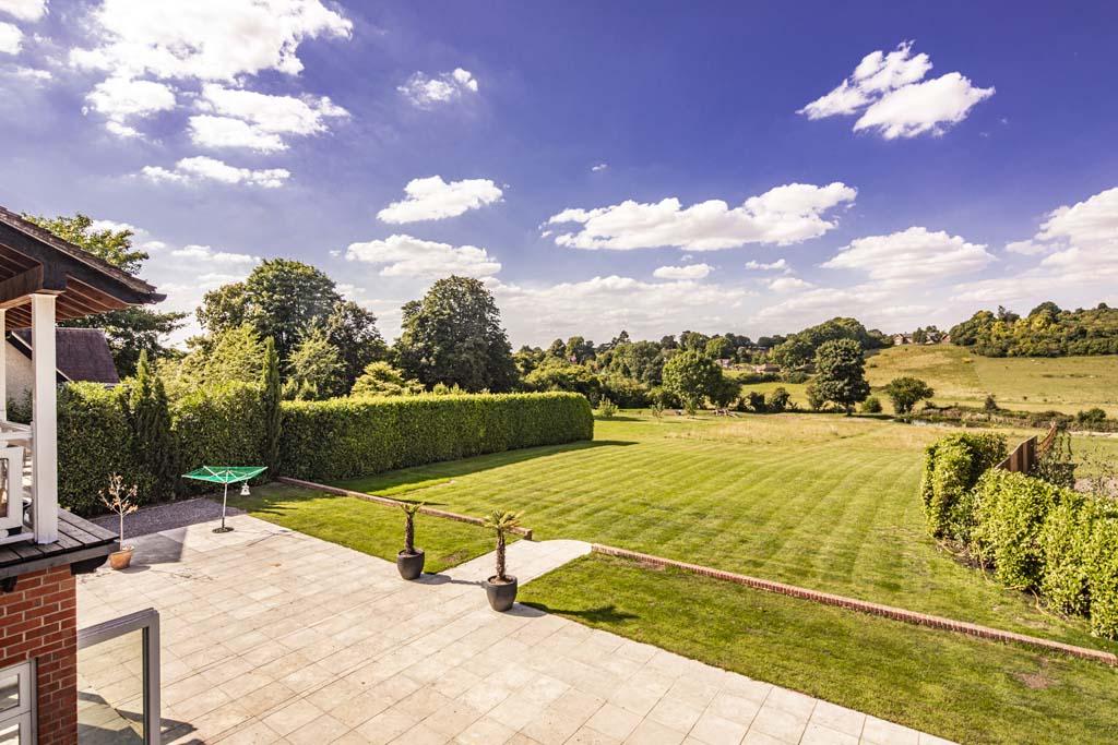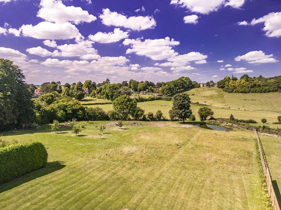 The main gardens are at the back of the house and are an absolute delight. Spanning almost the entire width of the house, a tiled terrace of 250 sq metres allow for an “al fresco” lifestyle with views across the Elvendon Valley. Combining hedged and fenced boundaries, the entire grounds extend to approximately 1.4 acres and the garden is mainly lawn with mature shrubs and trees with a natural pond to the boundary with the adjoining fields beyond. The views are magnificent and its elevated setting ensures a clear uninterrupted spectacular sunset is enjoyed.