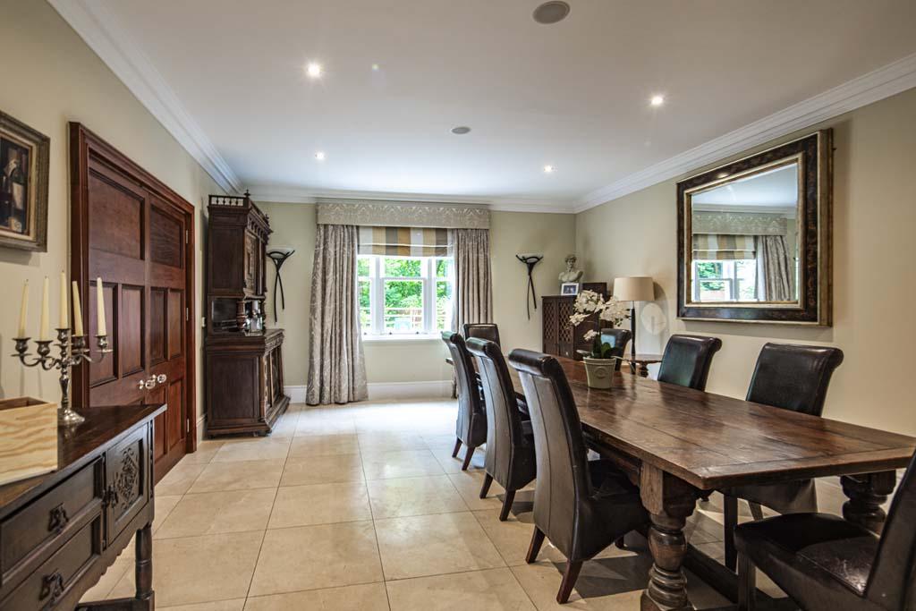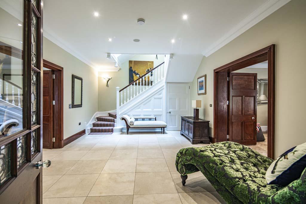 Haydown is a stunning property, occupying a commanding position on the edge of the village. Built in 1907 in the “arts and crafts” era, this prestigious home has been in the ownership by the present owners for many years, who have refurbished and enhanced the original property to great effect. The result is a wonderful 9 bedroom, 8 bathroom family home. Striking in appearance with brick and rendered elevations, Haydown incorporates its true heritage with a fabulous modern twist. Throughout the property are numerous architectural features such as galleried landings, high ceilings and cornicing and original herringbone flooring. Entrance is through oak double doors into a lobby area and then door into the galleried reception hall. Stunning Travertine flooring runs through into most of the downstairs rooms and it has underfloor heating to the main house. Doors then take you through into the sitting room which has a beautiful sandstone fire surround with log burner. The original herringbone flooring has been restored to a high standard. The dining room sits on the other side of the hall and also displays a fireplace. Doors then lead into the generous kitchen breakfast room which sits across the back of the house with bi-folds opening out onto the terrace, creating a connection to outside and a feeling of “inside outside living”. The kitchen is a Griggs and Mackay design with quartz worktops and contrasting wood island. A breakfast bar sits overlooking the garden offering a wonderful seating opportunity. There is a family area at the back of the room with a wood burner. A door from the kitchen leads straight into the spacious utility room and there is a separate boot room. The boot room has a cloakroom and shower, plus door leading into the integral garage . With a side porch outside, the boot room is perfect for muddy boots and muddy pets. Another door from the kitchen takes you to the rear lobby with cloakroom and then steps down to the wine cellar. The cellar is full height with power and lighting. From the rear lobby is access into the “self-contained” annexe. The annexe has a double bedroom, kitchen/sitting room with steps out to its own private fenced garden, shower room and utility cupboard. Should an annexe not be required, this space can easily become part of the main house.