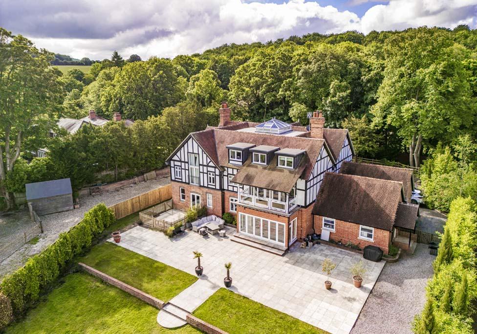 A stunning Edwardian property incorporating impressive architectural features and offering accommodation of 7,459 sq ft across 4 floors, set within delightful gardens and grounds of approximately 1.4 of an acre and providing panoramic views across adjoining countryside and Elvendon Valley beyond. Planning permission has been granted to extend to the side to create a covered patio and above the garage for a large games room.