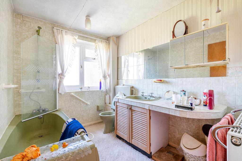 Requiring a full renovation throughout, this property offers a blank canvas for those seeking a project. A spacious sitting room with a large bay window forms the heart of the ground floor, leading into a kitchen/dining area with potential for a stunning transformation. The conservatory spanning great width presents an opportunity to create a versatile living space. Upstairs, four bedrooms and a family bathroom provide the basis for a comfortable family home. Outside, the garden offers a quiet setting, while off-street parking and garage adds convenience.
