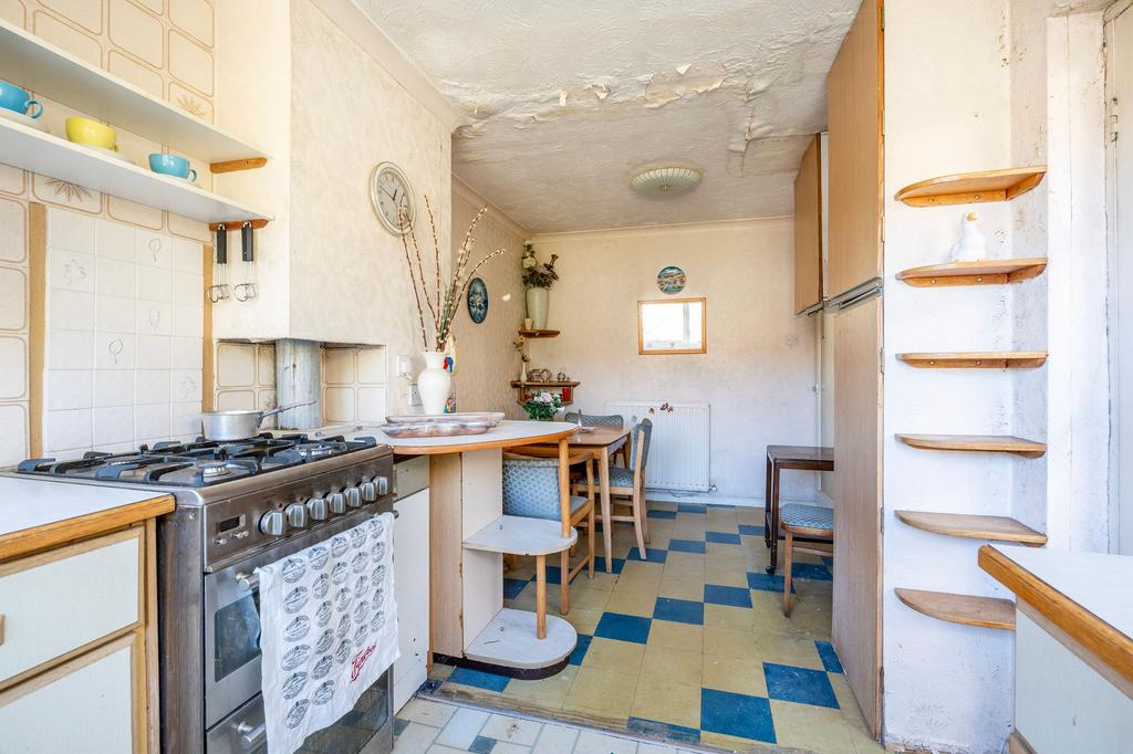 The property has a history of subsidence, which has now been rectified. However, it requires a program of renovation. Currently featuring single-glazed windows in the kitchen and one bedroom, the property also exhibits cracks in the rear bedroom.