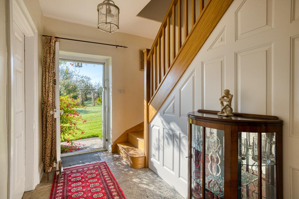 In the centre of the house the flagstone, central hallway has a central door which opens to the south garden. New oak stairs rise to the first floor and below these there is a smart understair cupboard.