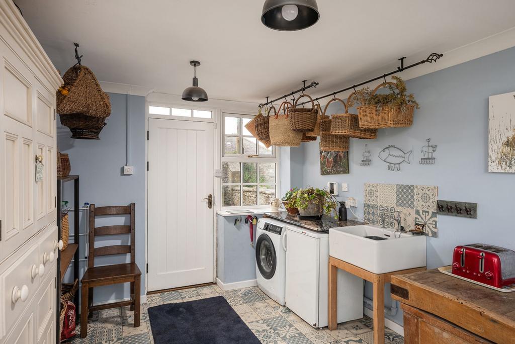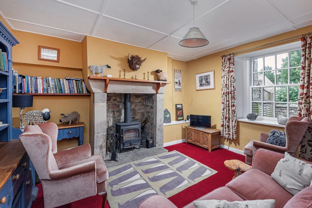 At the front elevation is the cosy snug, which benefits from an inglenook fireplace sitting centrally between two alcoves, with a multi-fuel stove and dressed stone surround, adding a rustic charm to the room.