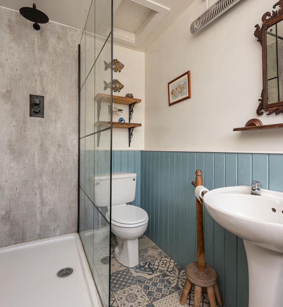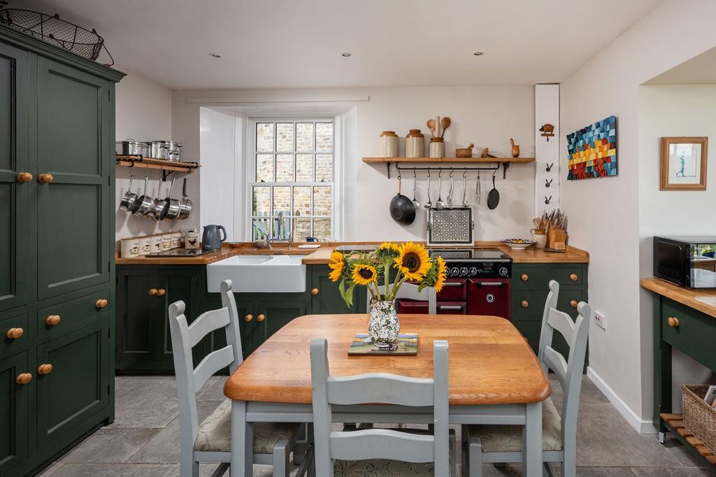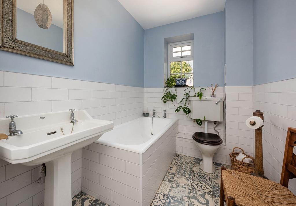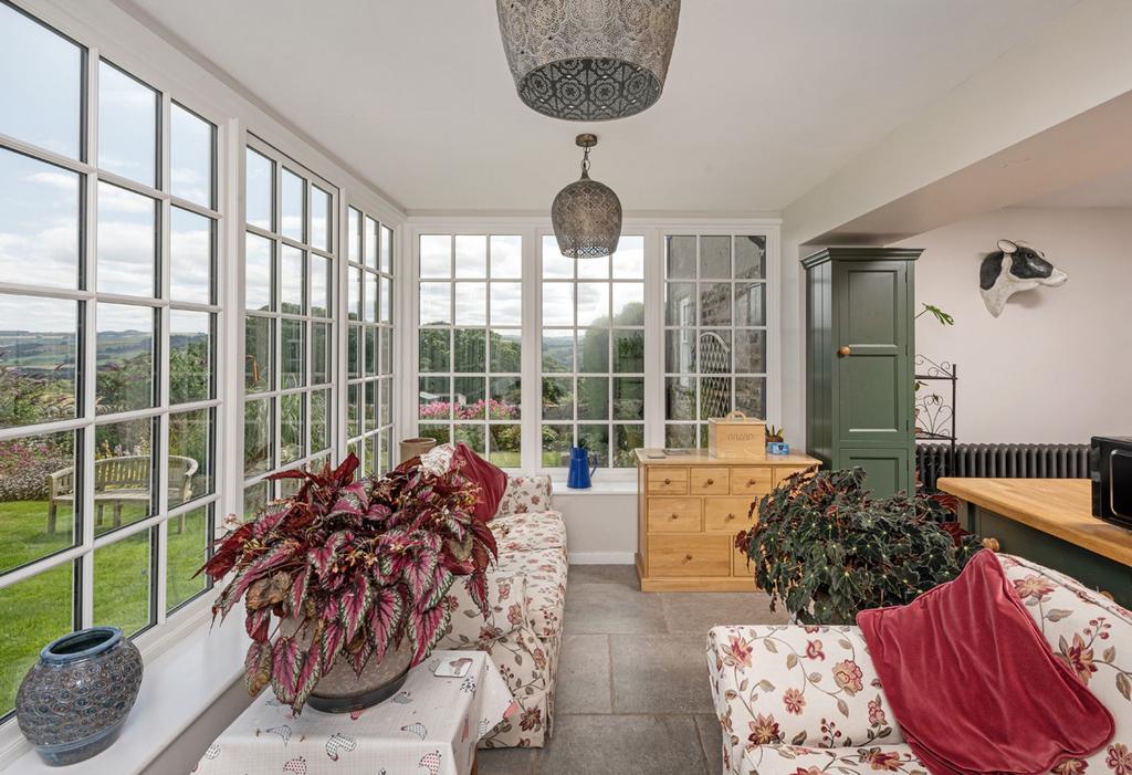 The kitchen has been beautifully updated with an inframe solid wood design, featuring a Belfast sink, an electric Rangemaster, and a spacious larder cupboard. Adjacent, the garden room enjoys uninterrupted views of the surrounding countryside, offering a serene space to relax. Additionally, the downstairs WC has been converted into a convenient contemporary shower room.