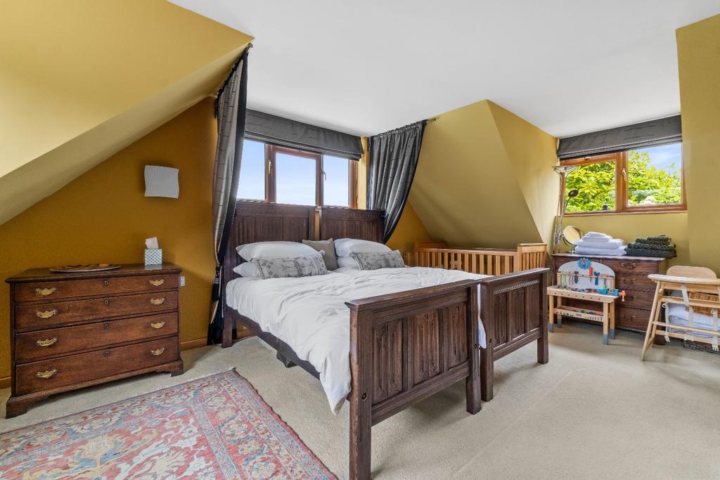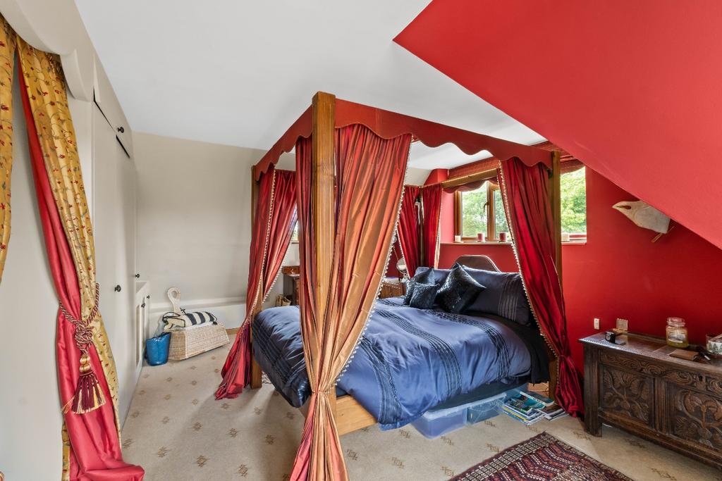Throughout the ground floor, slate tiles set a classic tone and many unique bespoke features add interest. Two doors leads from the kitchen, one to the hallway and one to a dining room, beside this is the office/4th bedroom. To the left, there is a large storage cupboard under the stairs and the sitting room. This is triple aspect room with French doors to the south terrace and double doors through to the conservatory. The sitting room has a bespoke Bath Stone fireplace with an open fire as a focal point.