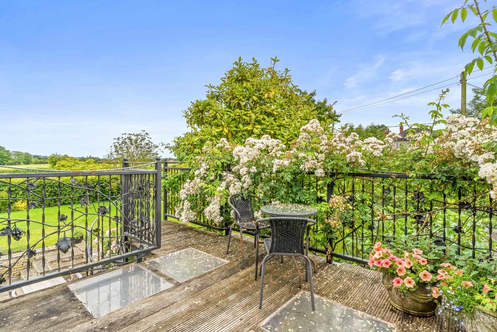 The landing is spacious with the spoke black and gold carpet and doors open from here to the balcony above the south terrace. This decked,elevated area, offers views over the surrounding countryside and an ornate spiral staircase descends to the paved terrace outside the south of the sitting room.