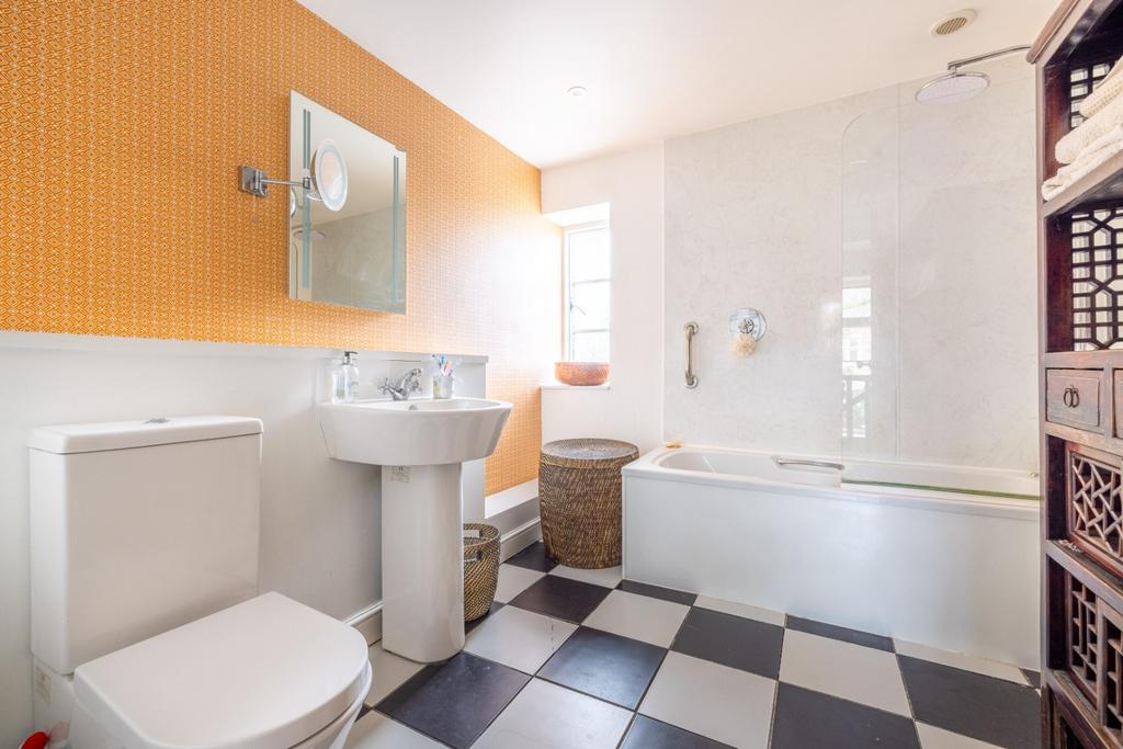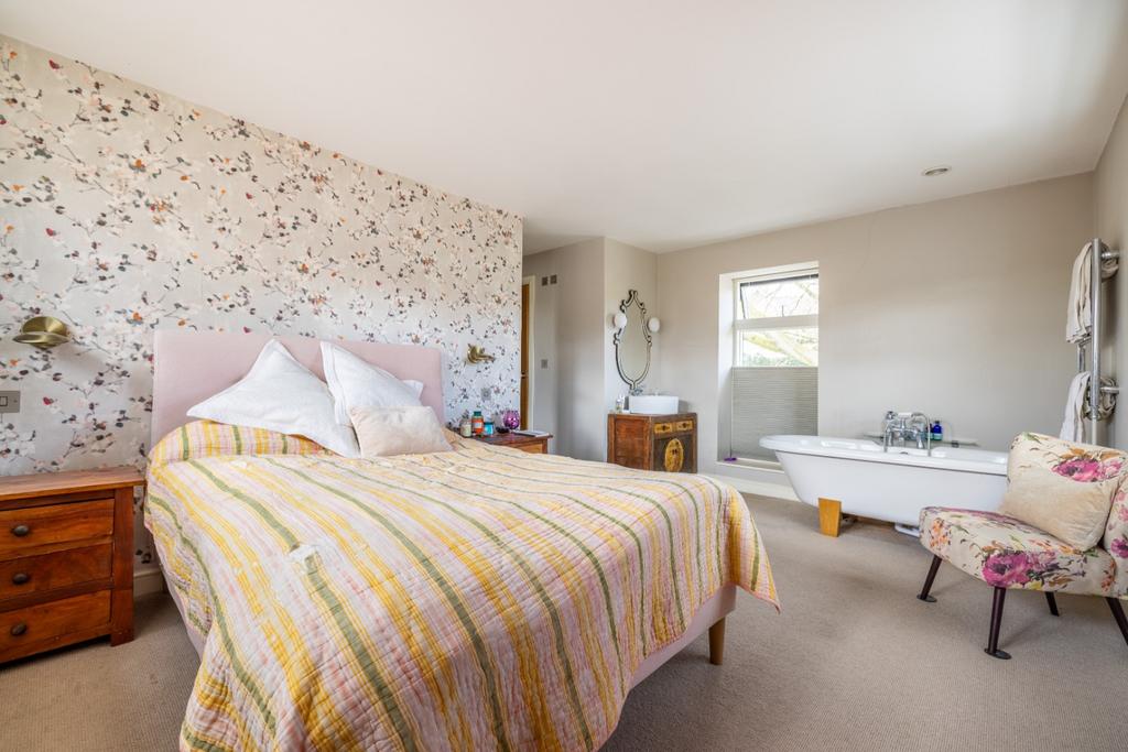 Upstairs there are three bedrooms, one of which has a freestanding rolltop bath and sink in the bedroom and an additional separate dressing room and separate w.c., creating a luxurious principal suit. There is also a family bathroom. All the upstairs doors are solid oak.