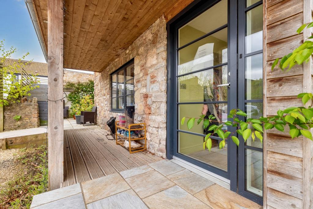 To the front of the house there is a covered, raised, decked veranda, perfect for a table and chairs.