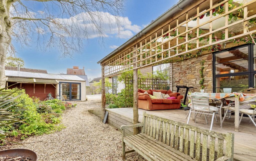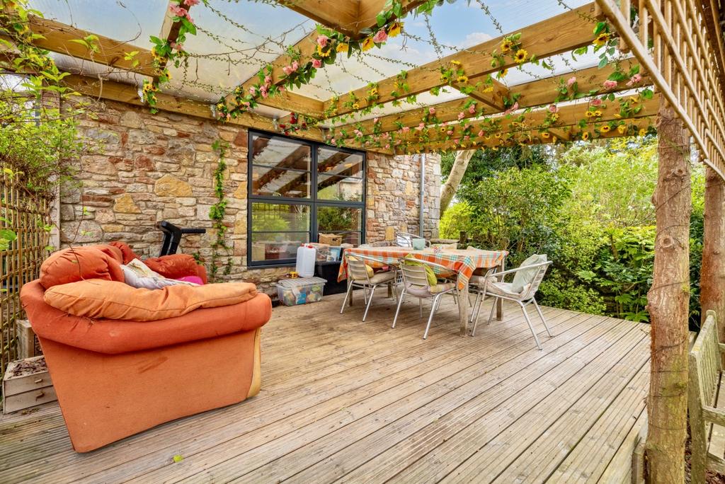 A fabulous home that has in recent years been given a new lease of life with stylish interiors and high specification windows and doors which flood it with light from all directions and ensure it is economical to run. The house has been cleverly designed with discreet cupboards which maximize storage and large windows and glazed doors connect the interior with the exterior. Sheltered, terraces and covered decked verandas are also perfect for enjoying the varied and mature gardens. The accommodation revolves around a sociable, central kitchen/dining area, perfect for family life or sharing with guests. The gardens, ancillary buildings and spacious drive offer an interesting additional dimension to this stunning home.