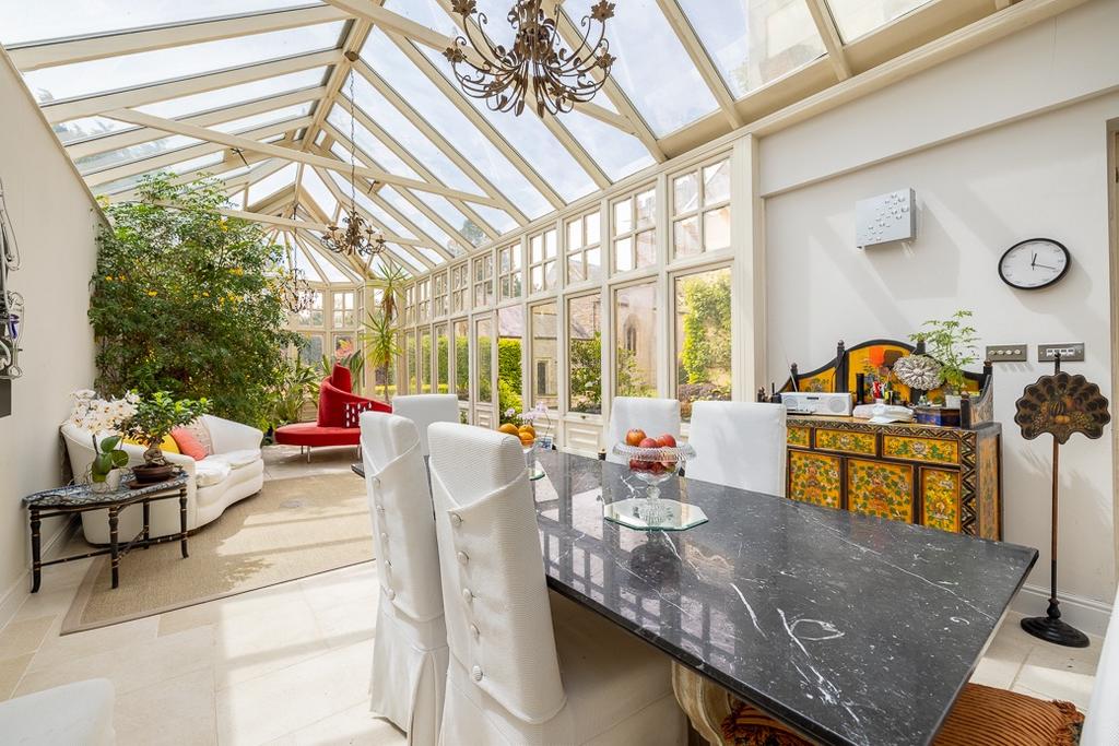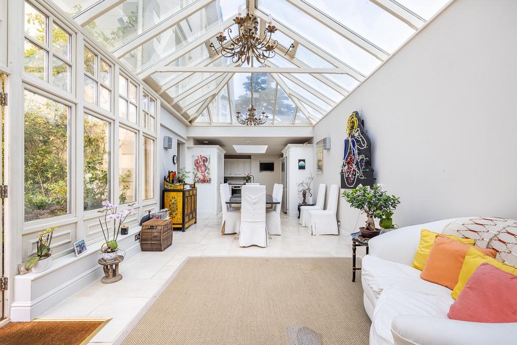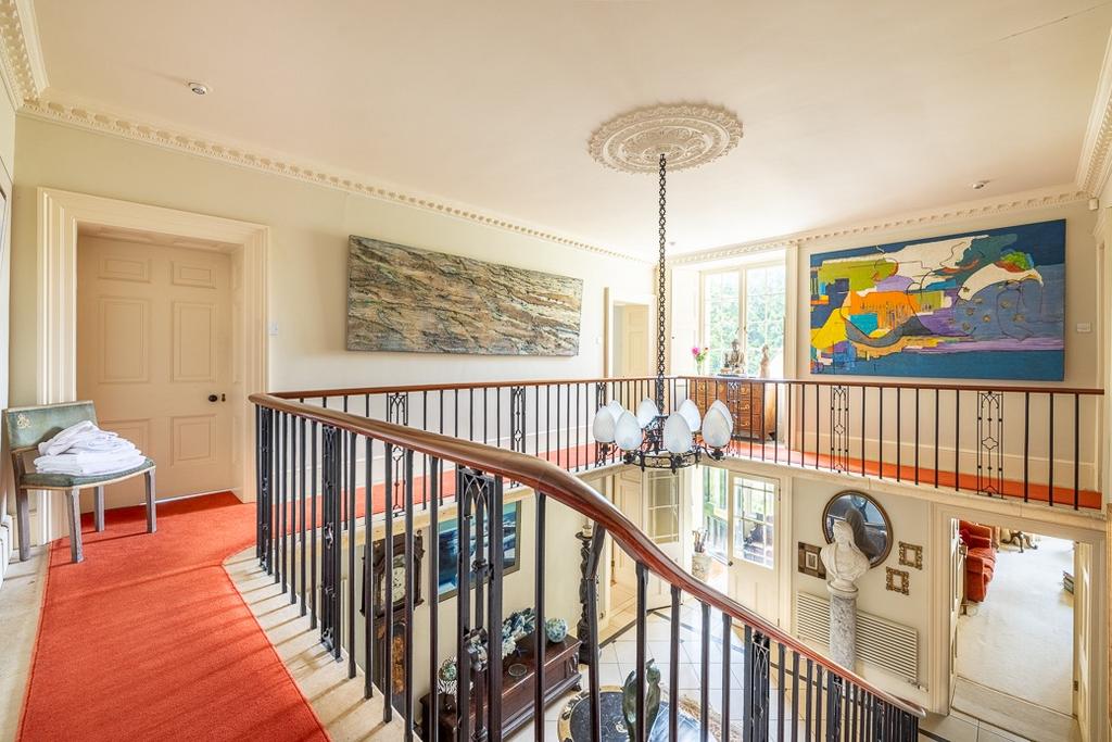 This elegant largely Georgian house is light and spacious, with very manageable and liveable accommodation. On the ground floor, the well-proportioned reception rooms all lead off directly from the double ceiling height reception hall with a cantilevered stone staircase and galleried landing. The south and west facing open plan garden room (with kitchen & dining areas) provides a magnificent entertaining space, a utility/laundry and two cloakrooms.
