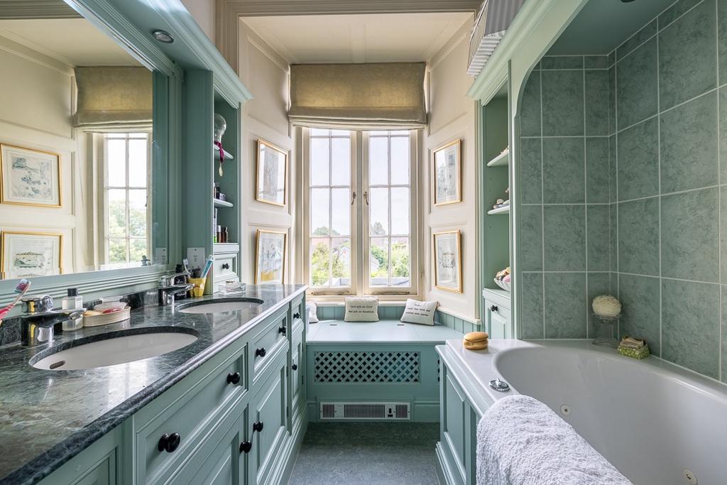 The staircase rises to a galleried landing and to the east side of the house and the principal bedroom suite. The bedroom has an extensive range of built-in fitted wardrobes and an exceptional en-suite bathroom. One section has a shower/steam cubicle, another a jacuzzi bath and twin basins with cupboards below whilst a third screened section has a basin, bidet and loo. The room also has extensive linen storage cupboards.