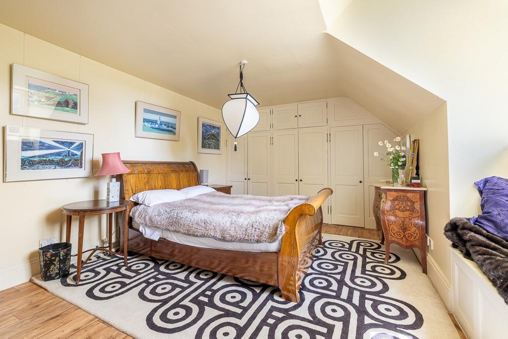 On the west side of the gallery landing is a smaller landing area with access to a double bedroom with built-in cupboards, a shower room with WC and wash basin, and a large double bedroom with a south facing bay window and bookshelves.
