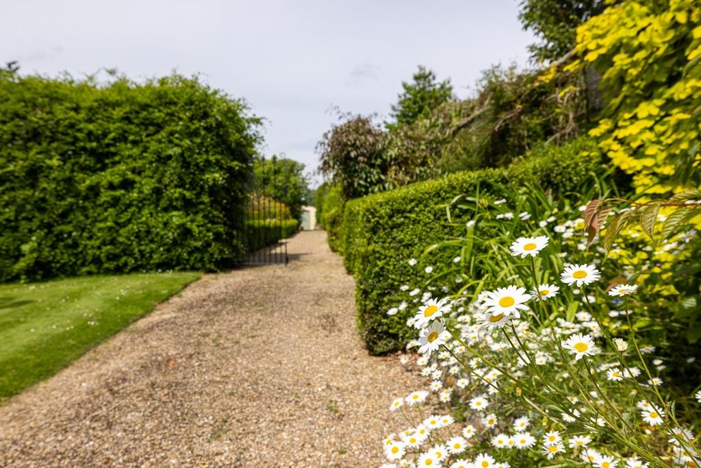 The gravelled drive/path leads to double wrought iron gates which open to beautiful private landscaped gardens. These have been planned, landscaped and maintained to exceptional standards and include terraces, lawns, herbaceous borders, flowerbeds all divided by box hedges.
