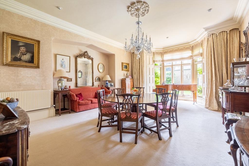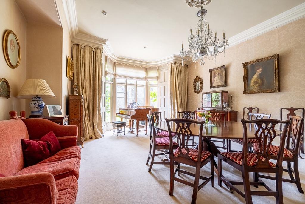 Returning to the main hall, there is direct access to the main guest cloakroom with a fitted cupboard for coats. The dining room is accessed directly from the main hall and is beautifully proportioned with high ceilings and a bay window with the original shutters and outlooks towards the church. A small inner hall off the main hall leads to the second stair case in the property, the utility & laundry room and a cloakroom with basin and WC.