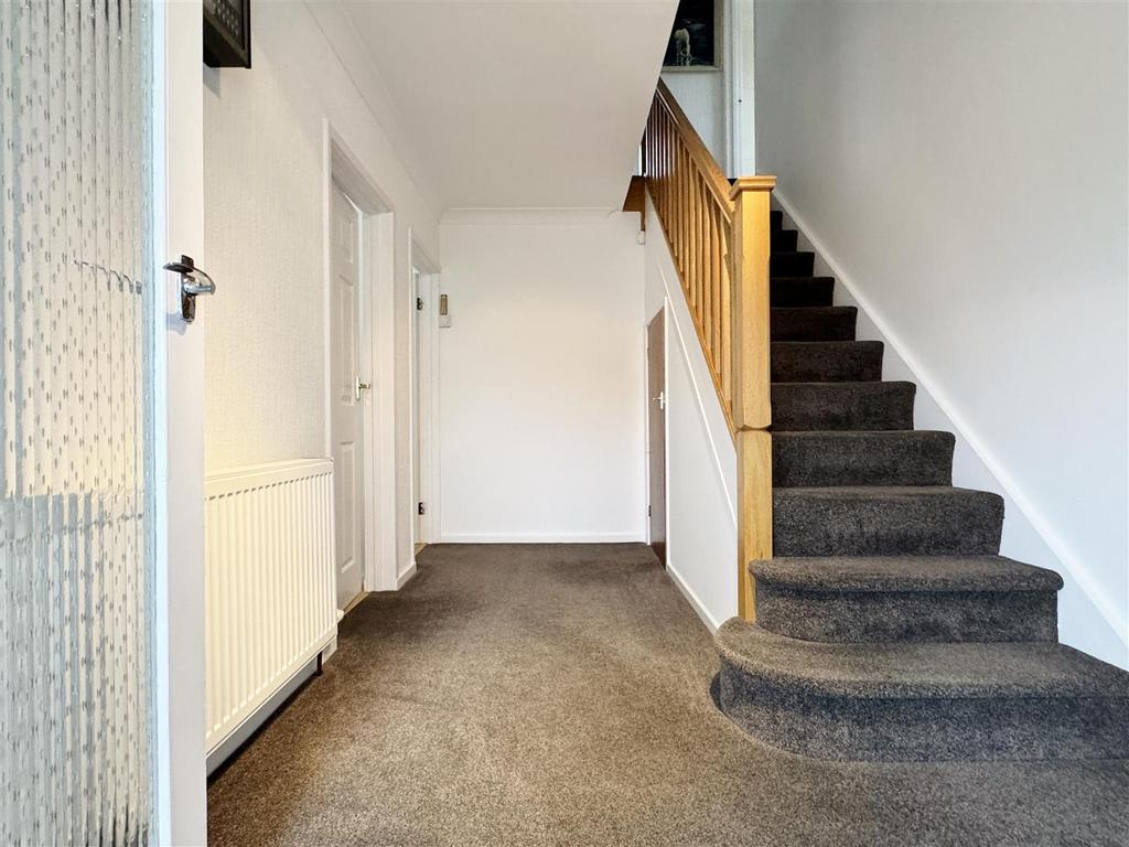 Hallway - 4.06m x 2.34m (13'4 x 7'8) - Spacious central Hall. Turned staircase leads to the first floor with a spindled balustrade. Understair cloaks/store cupboard with a phone point. Double panel radiator. Corniced ceiling. White panelled doors leading off.