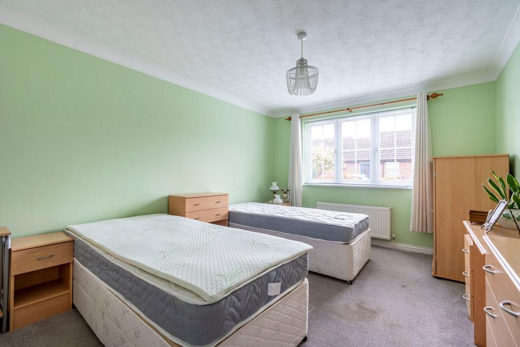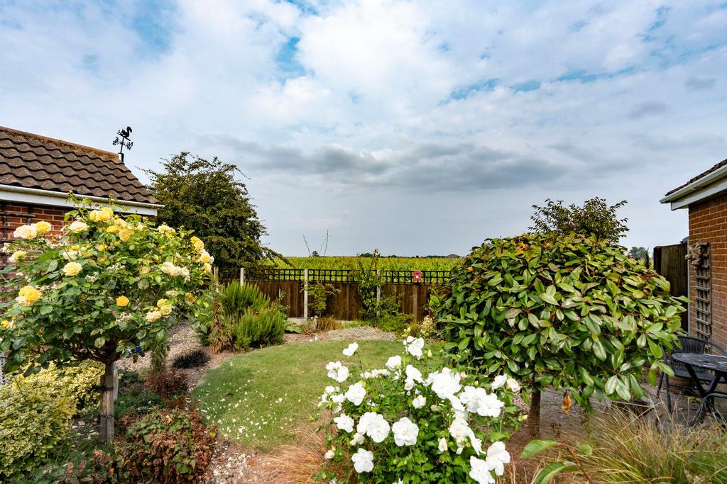 The rear garden is predominantly laid to a mixture of gravel and paved patio, with shaped lawn and well stocked shrub and bush borders. A low level fence to the rear boundary provides open field views beyond.