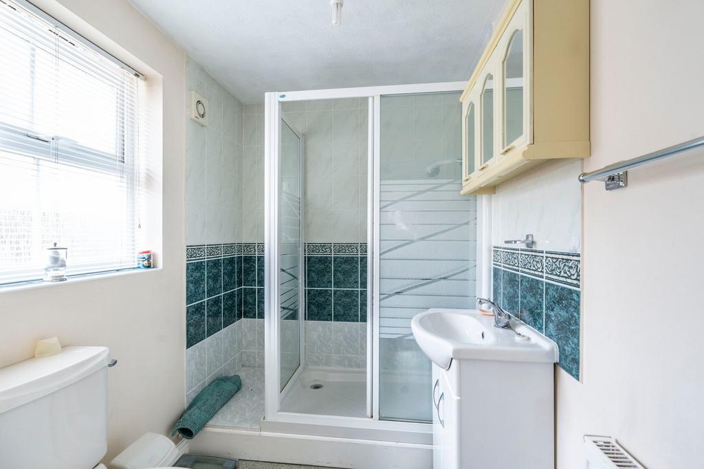 Being fitted with a three piece suite comprising double shower cubicle with mains fed shower within, low level WC, wash hand basin inset to vanity unit, partly tiled walls, radiator, extractor fan, double glazed window to side aspect.