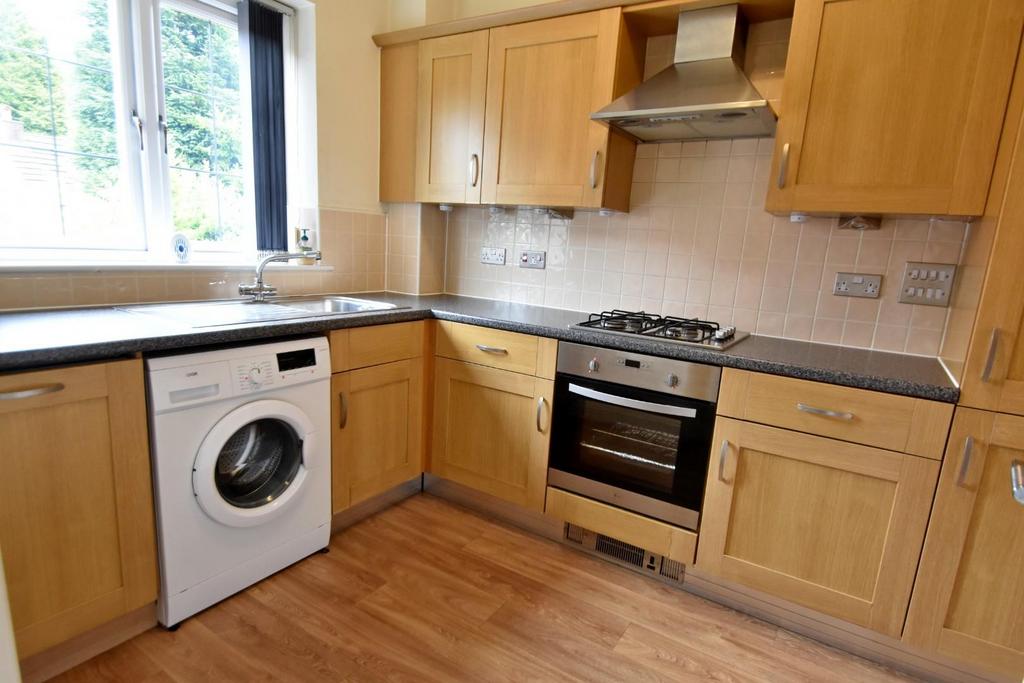 Kitchen - 3.13m x 2.41m (10'3" x 7'10") - Double glazed window to the front, selection of wall & base units with work surfaces to complement, integrated dishwasher, fridge/freezer, electric oven and gas hob with stainless steel extractor hood over, plumbed for washing machine, stainless steel sink & drainer, tiled splash back and down lighting.