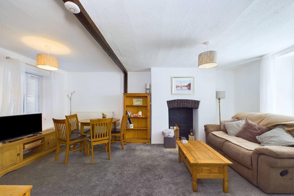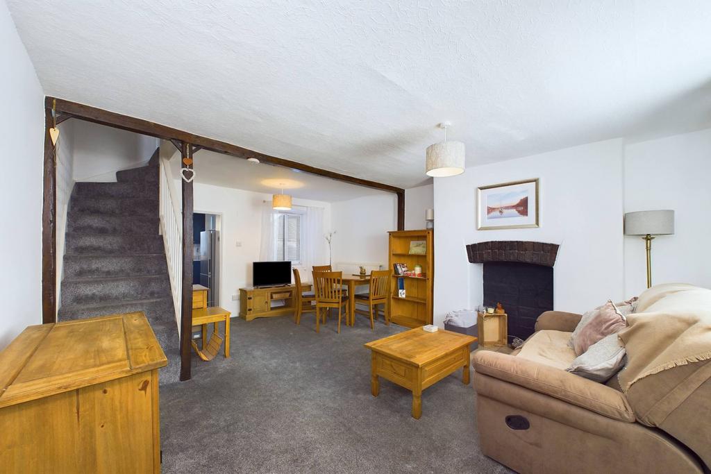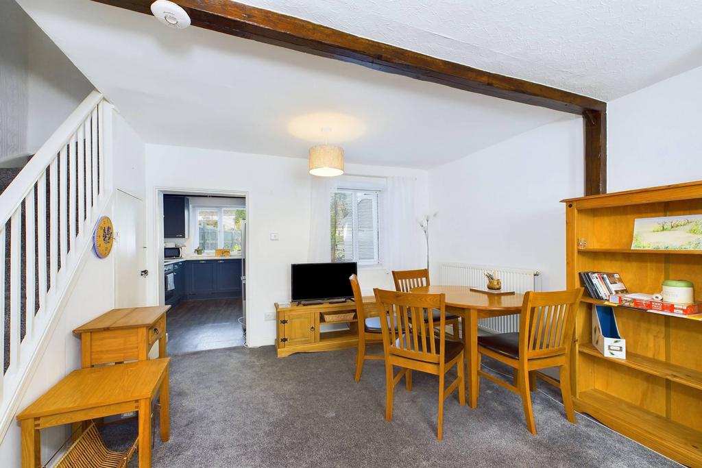The living room/diner is a good-sized, open-plan space with ample character features. It includes stairs leading to the first floor, an under-stair storage cupboard, and a doorway to the kitchen.