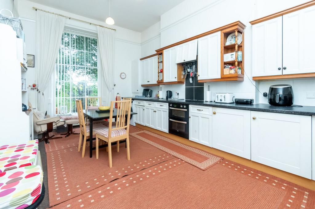 The heart of this home is the well-appointed living room, where one can truly appreciate the grandeur of this historic building. Original period features, including ornate cornicing and high ceilings, seamlessly blend with modern conveniences to create a space that is as practical as it is aesthetically pleasing. The focal point of the living room is the striking feature fireplace, a luxurious touch that adds warmth and character to the room.