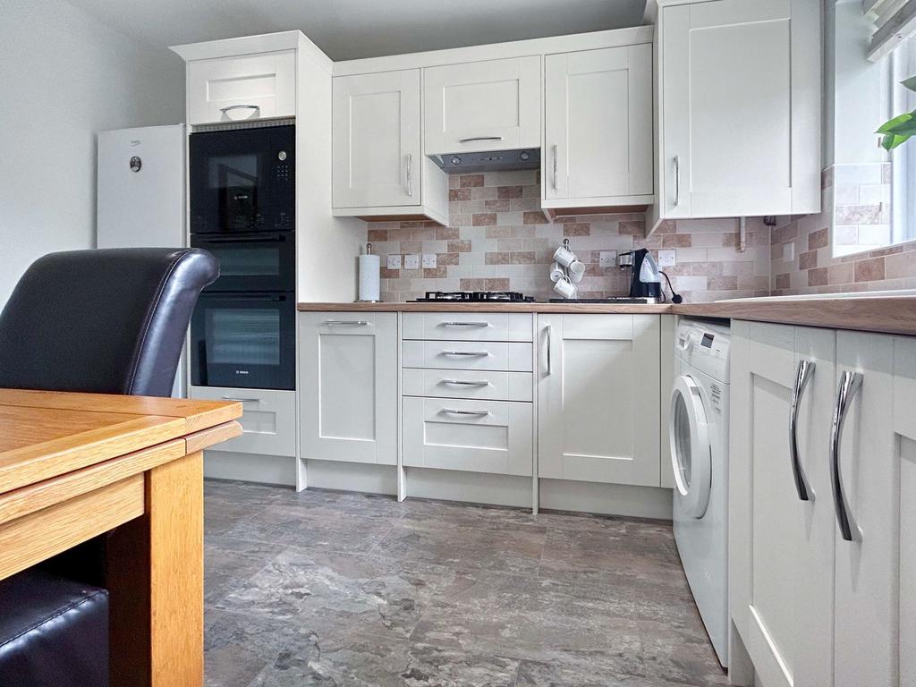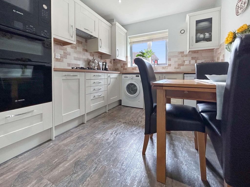 The first door on your right leads into the stunning modern fitted dining kitchen which has a range of shaker style wall and base units with complementing worktops over, eye level integrated double electric oven and microwave, and a gas hob with extractor fan over. There is more than enough space for dining, even when your friends and family come to visit.
