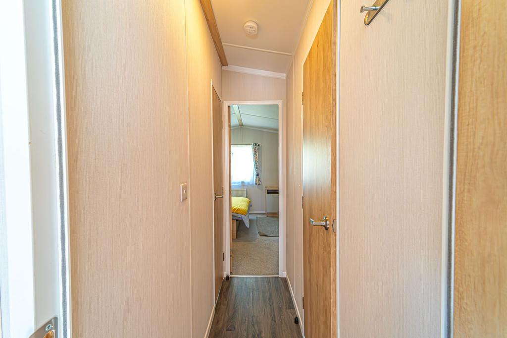 A hallway takes us to the living quarters, where we can find the two bedrooms, with the master bedroom enjoying a spacious double sized room that comes with plenty of fitted storage options, as well as an ensuite with a toilet. The secondary bedroom currently serves as a cosy twin rooms, also with great storage options, while the family bathroom can be found from the landing with another toilet, and an overhead shower in the cubicle.