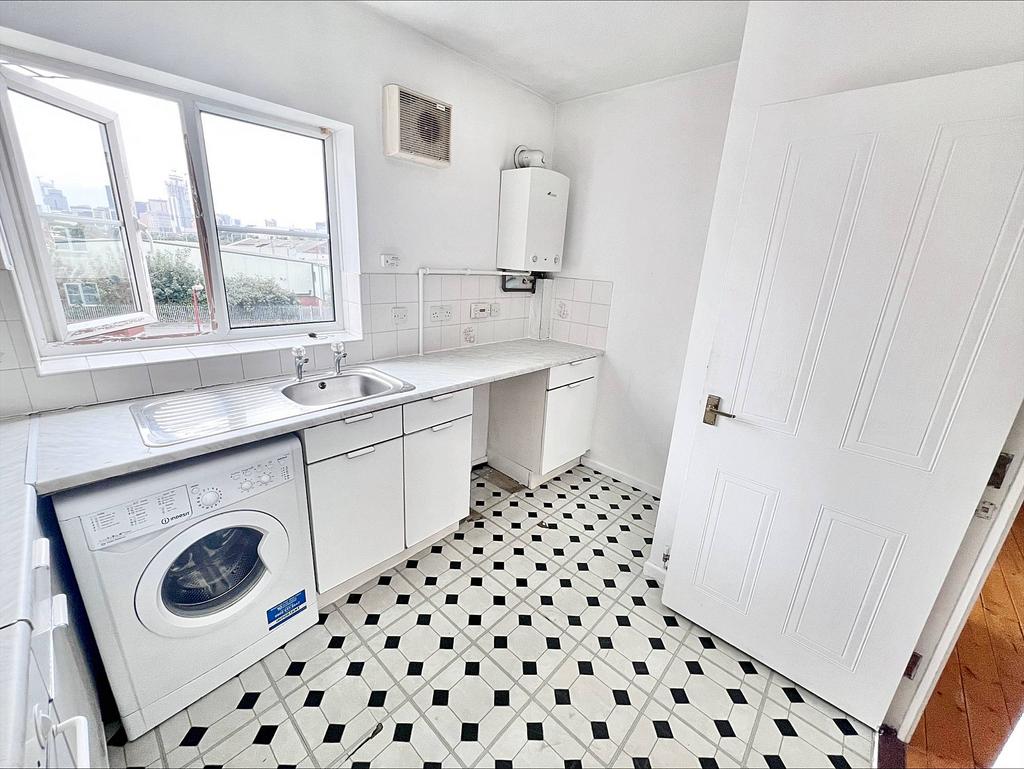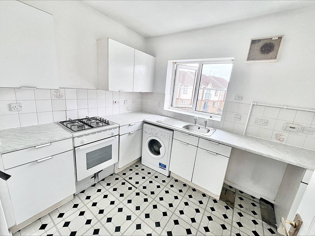 Having vinyl flooring, gas central heating radiator, a mix of wall and base units, work surface, stainless steel sink with hot and cold water taps, Worcester Boiler, electric oven and gas hob inset, carbon monoxide detector, ceiling light point and UPVC double glazed window to the front