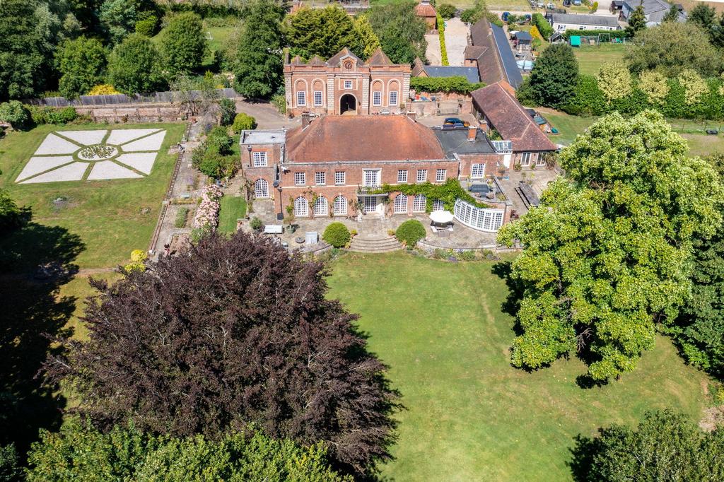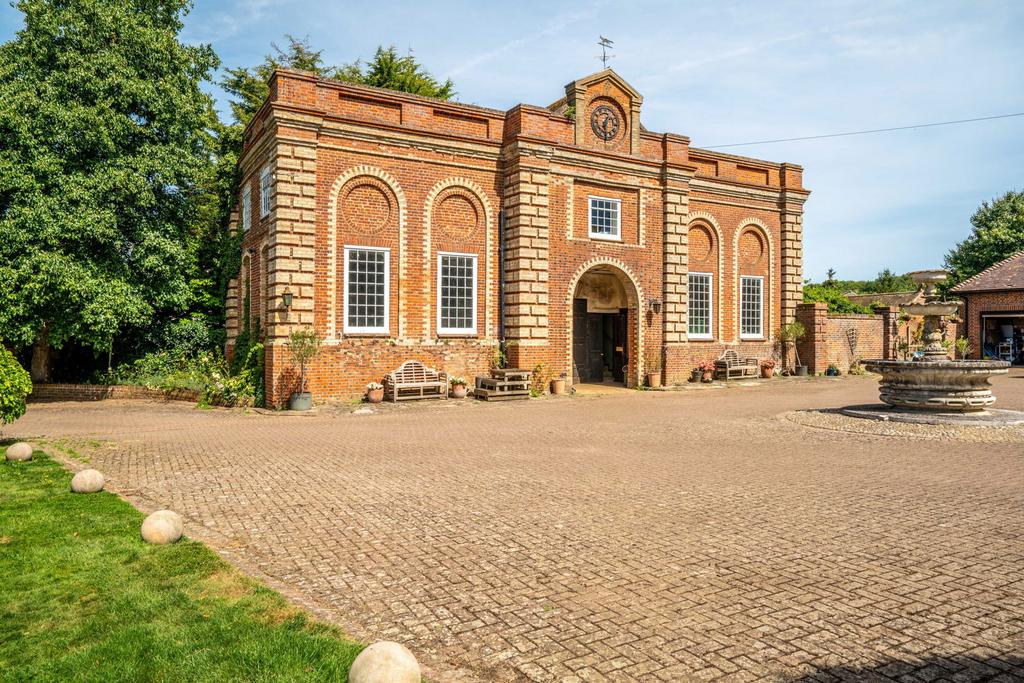 Approached via a private road, the house offers total privacy in a small hamlet and would be an idyllic family home, or a spectacular second home for large scale entertaining. As well as the grand main hall, there are three vast reception rooms on the ground floor, plus a huge kitchen/ diner, family room/ study, a beautiful sun-room with views over the parkland and a gym/ party room. Upstairs, there are five bedrooms and three bathrooms. Three of the bedrooms have separate sitting areas, including the master bedroom with connected dressing room and stunning roof terrace. All the bedrooms have significant amounts of inbuilt storage.
