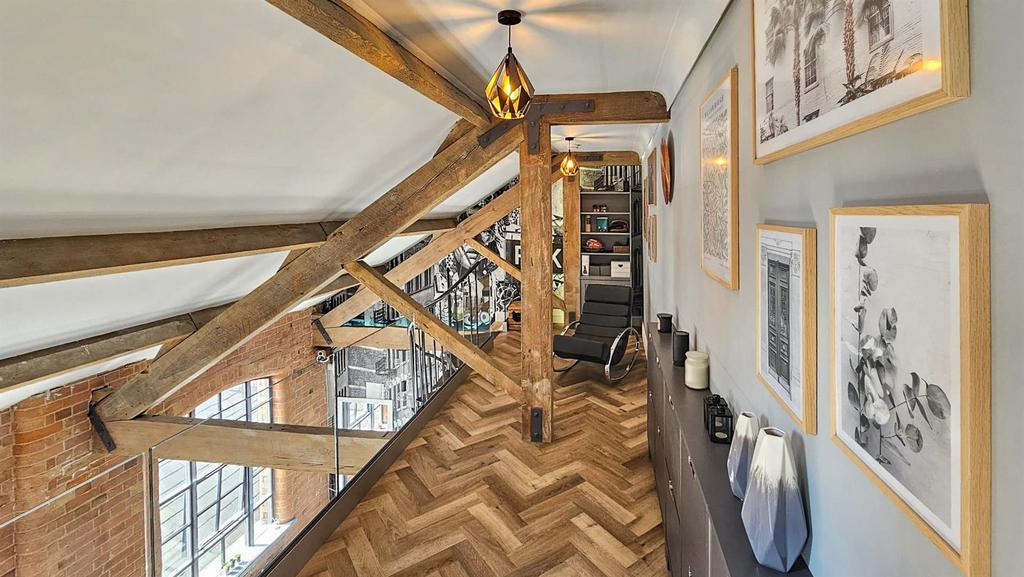 - Exposed brick walls, wooden beams and huge double glazed original feature windows which pour plenty of natural light into the apartment. Hallway with storage cupboard.