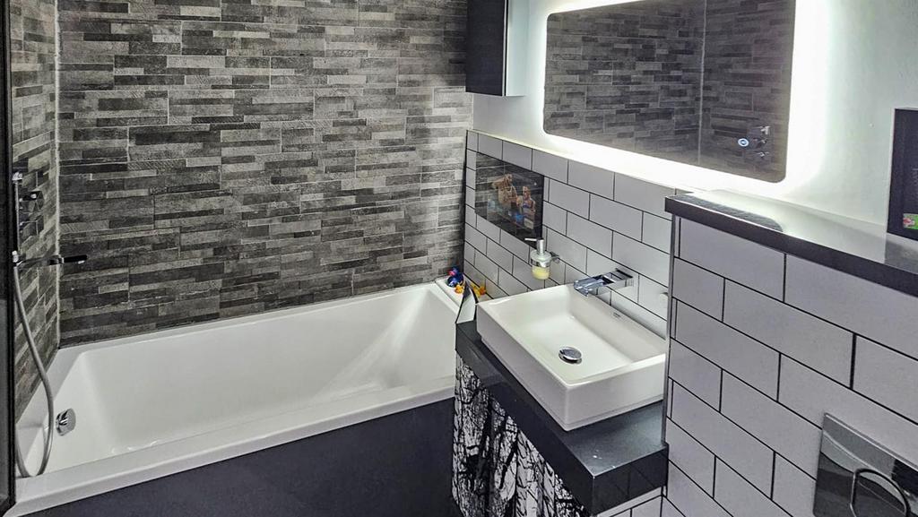 - Bathroom to include a shower over the bath, sink and WC. There's also a built in TV at the end of the bath which has a HDMI connector cable.
