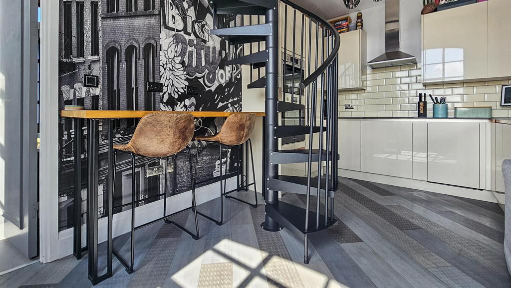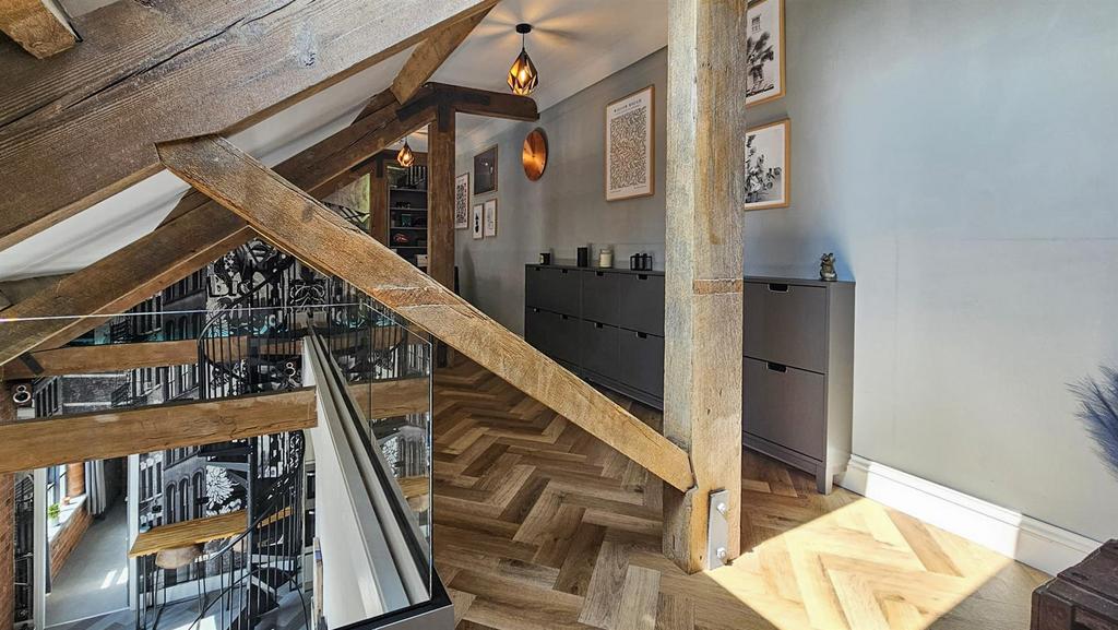 - Bespoke spiral staircase which leads you to the Mezzanine, which also has Velux roof windows for natural light.