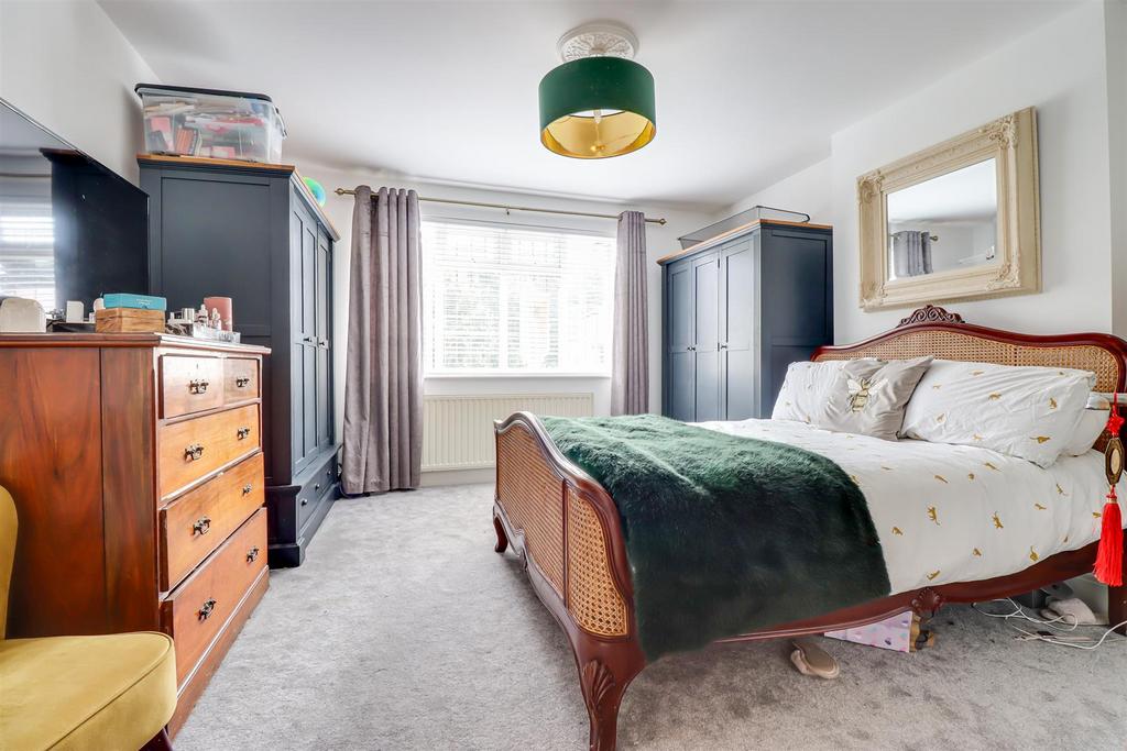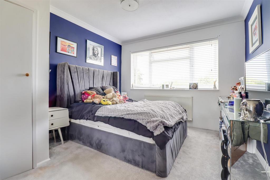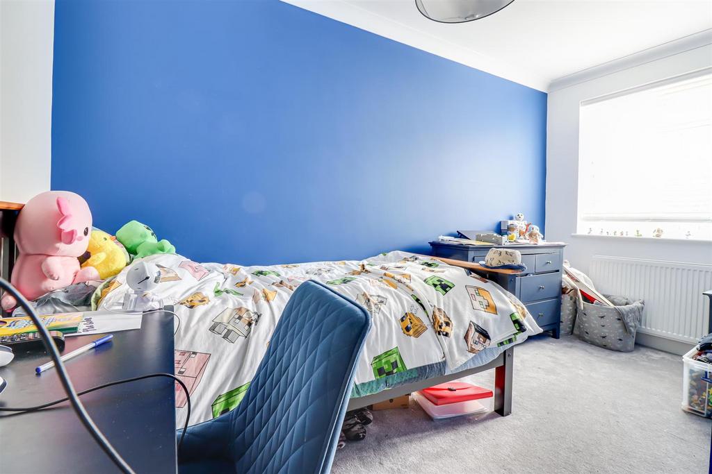 Bedroom Three - 3.43m x 3.19m (11'3" x 10'5" ) - Coved ceiling, double glazed windows to the rear overlooking the garden, radiator, carpet, built in storage cupboard.