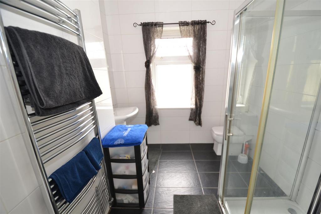 Shower Room - Three piece white suite, tiled walls, heated towel rail.
