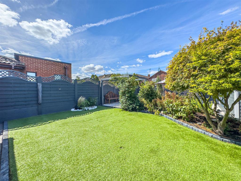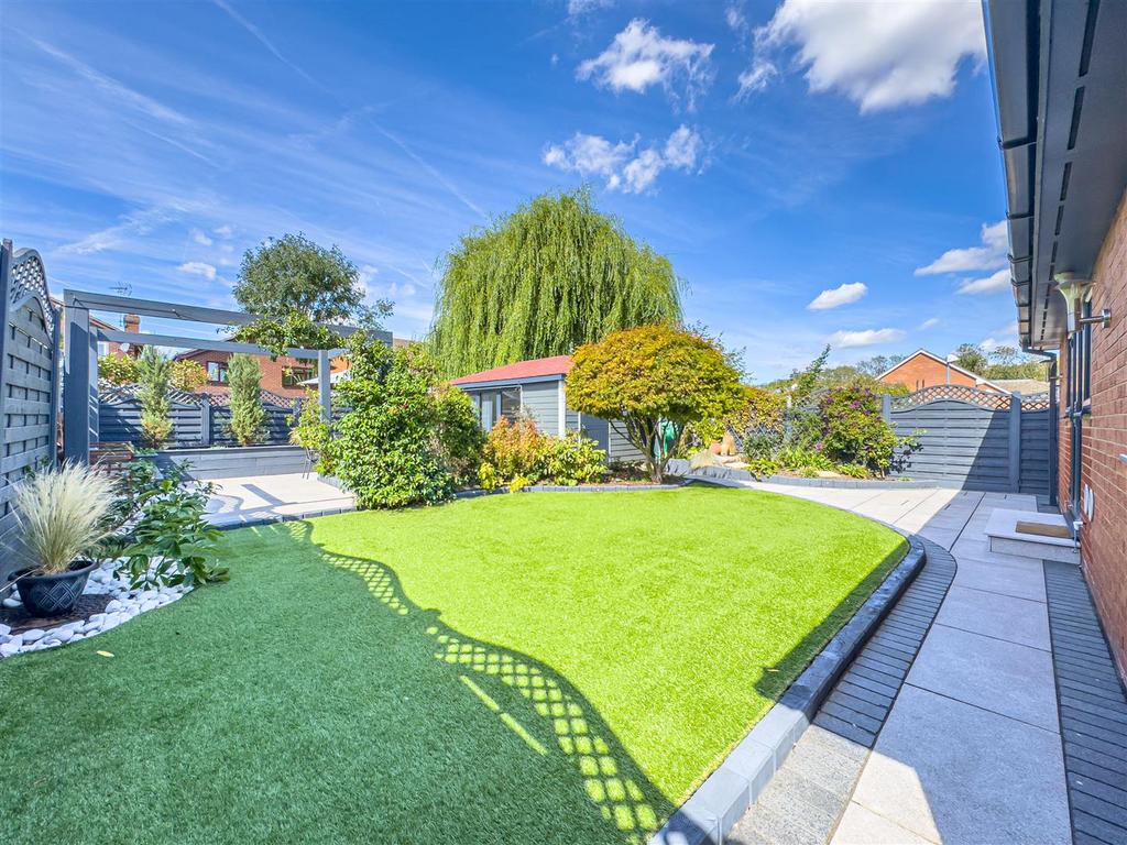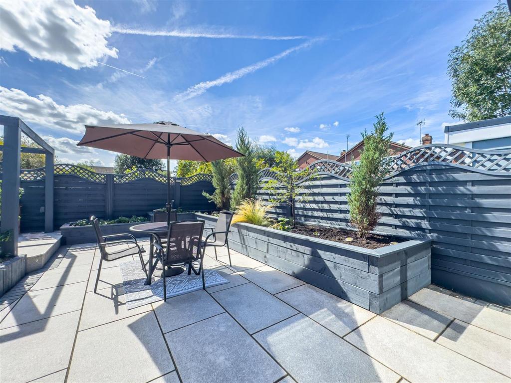 The rear garden is designed for low maintenance, featuring AstroTurf, a patio, and a charming veranda. It is fully enclosed by fencing and enjoys a west-facing aspect. Additionally, the property includes a detached, self-contained annex, which has recently been refurbished. The annex features a storage area, kitchen, space for a bedroom, and its own en-suite, making it ideal for guests or extended family living.