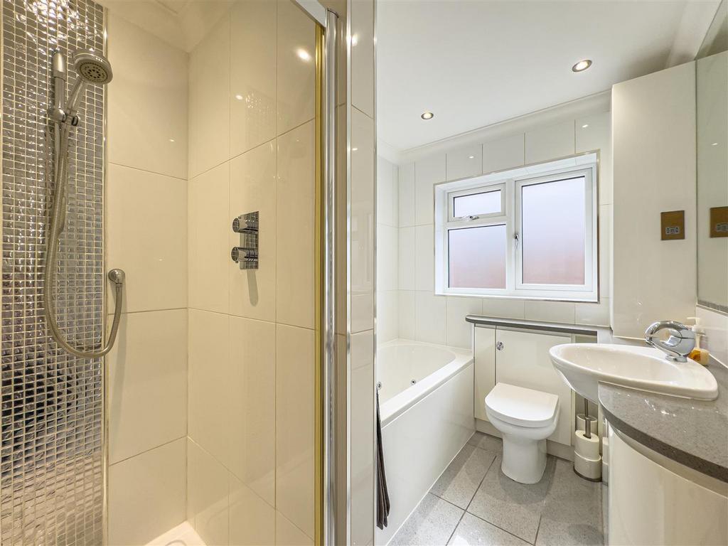 The main family bathroom is finished to a high standard, complete with a shower, bath, sink, and toilet. The third bedroom offers space for built-in storage and is designed for comfort.