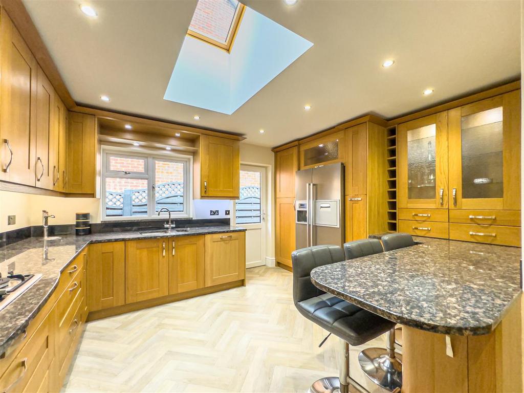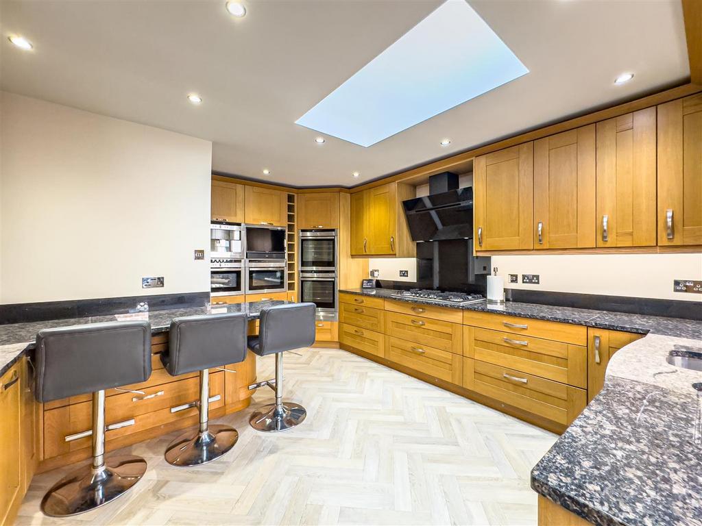 The property flows seamlessly into a separate kitchen and dining area, which is a cook's dream. The kitchen is equipped with high-end appliances, including an integrated coffee machine and a triple oven. The breakfast bar and modern, high-specification fittings make this space perfect for both everyday meals and entertaining, with convenient access to the sideway.